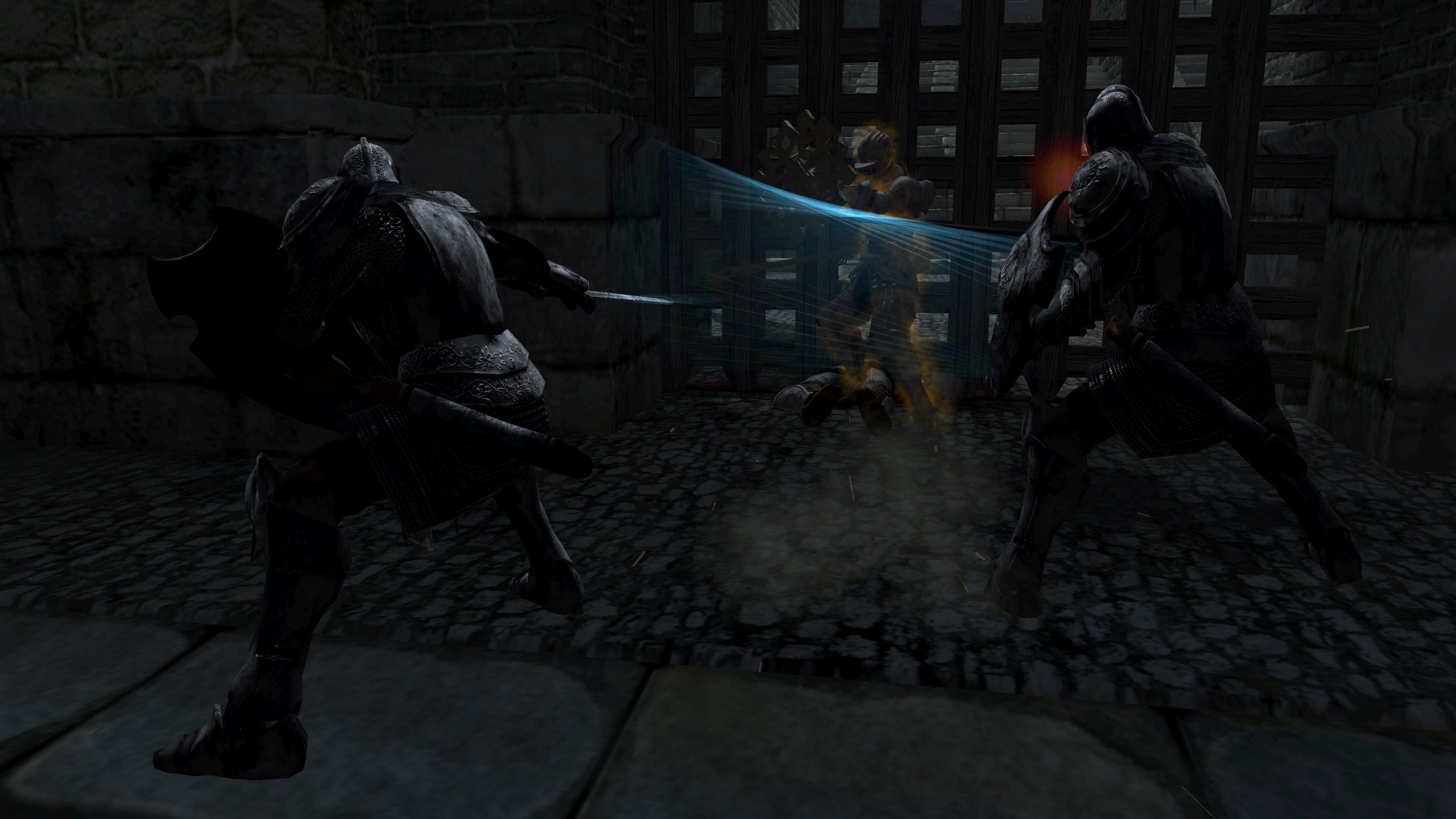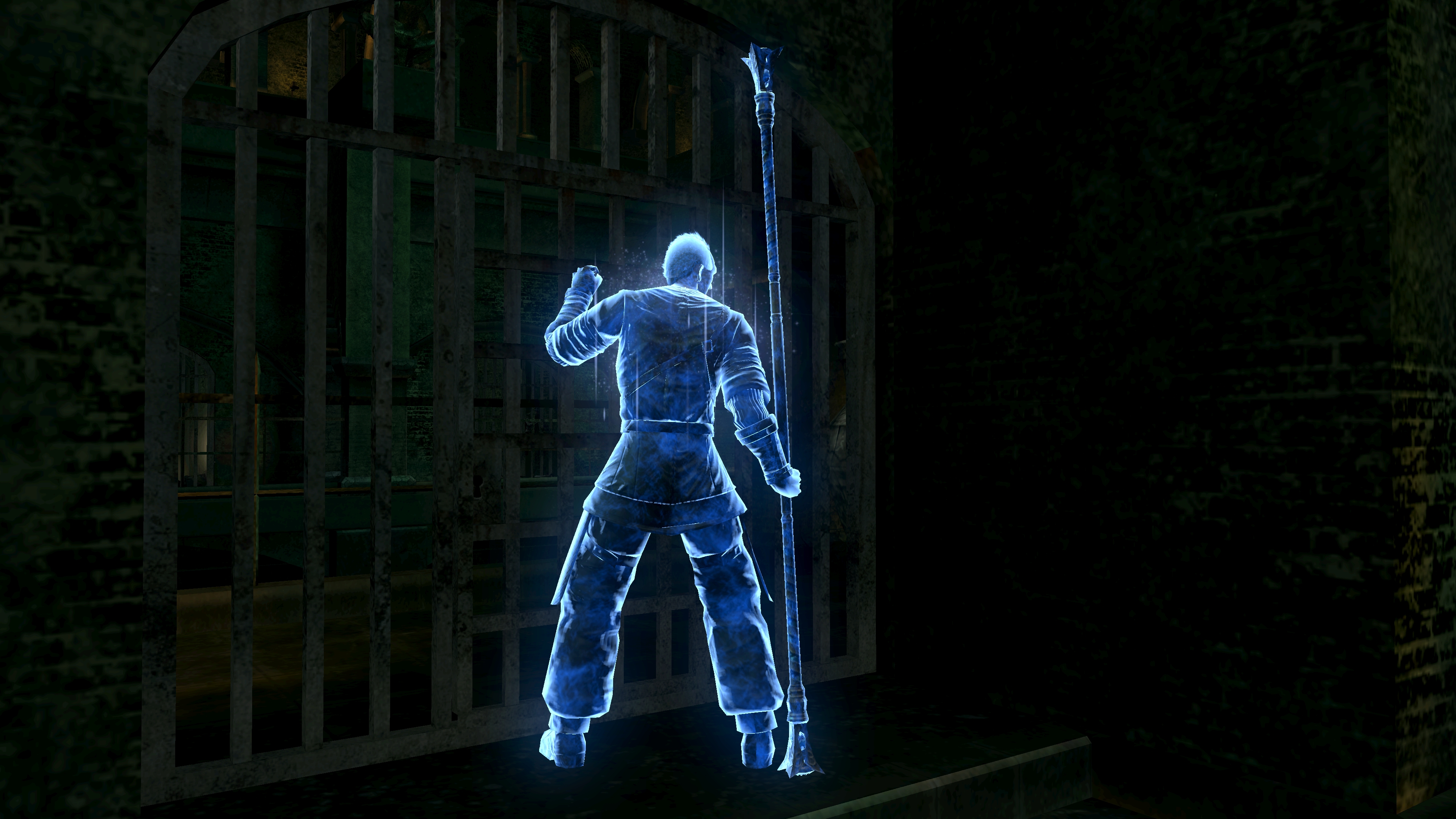 Indeed, according to the description for Cursed Weapon, the Penetrator demon has impaled many a knight. Considering that this enhancement spell derived from the demon’s soul drains the caster’s life force with each empowered strike, this was likely the biggest insult — what greater dishonor was there than to be slain by an imitation of the greatest among them? Their king’s playact of the knights’ self-inflicted strife makes a mockery of their pride. This betrayal must have hit the real heroes especially hard if they became black phantoms. The added irony is that the subject of their rage and resentment seems to now use it to control them. The spirits defend the castle’s innermost portcullis to the inaccessible royal residence, thereby protecting the king who betrayed them. Faced with either fakes or the genuine articles, the knights who valiantly kept up the fight could only die in disgrace.