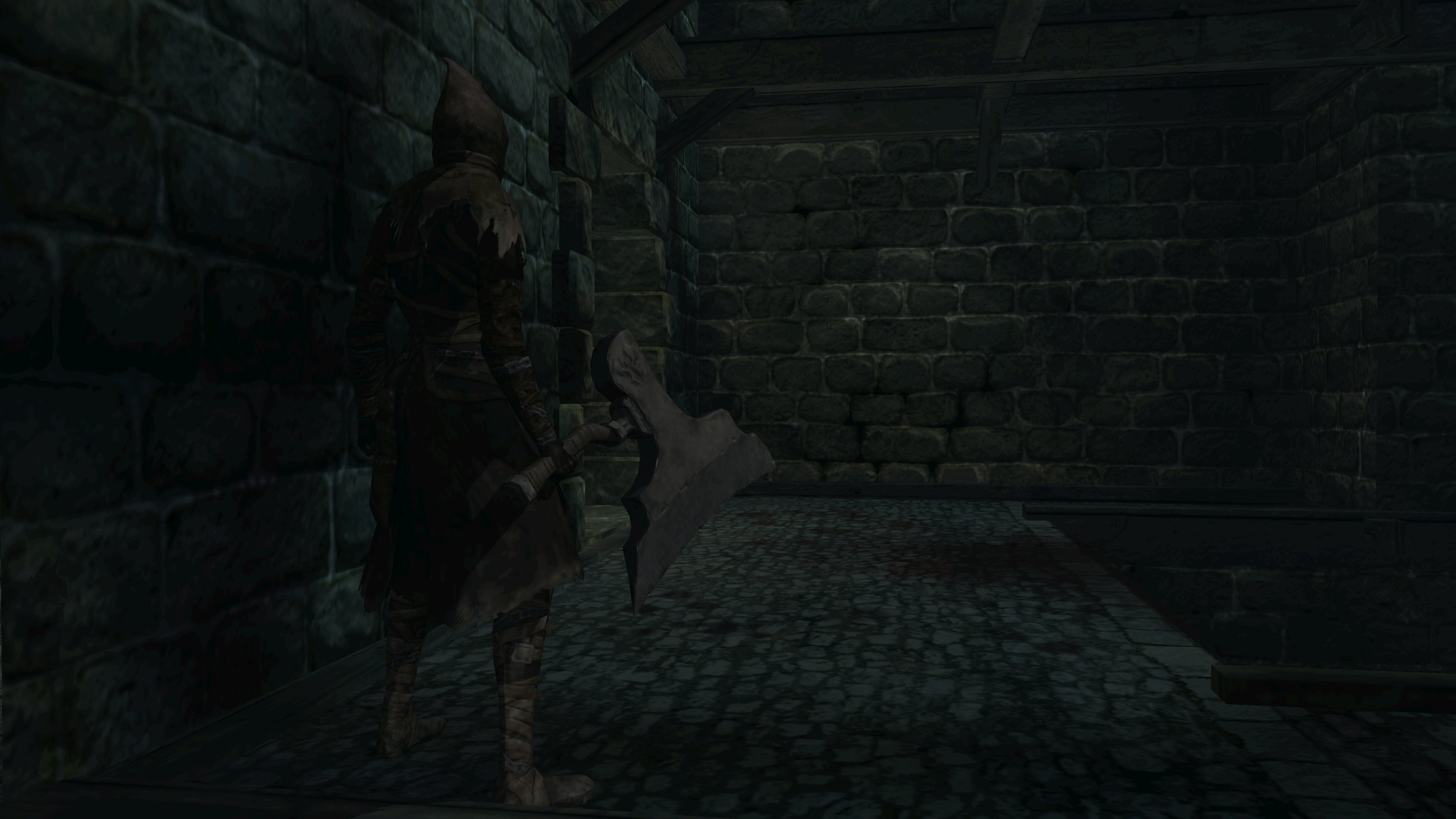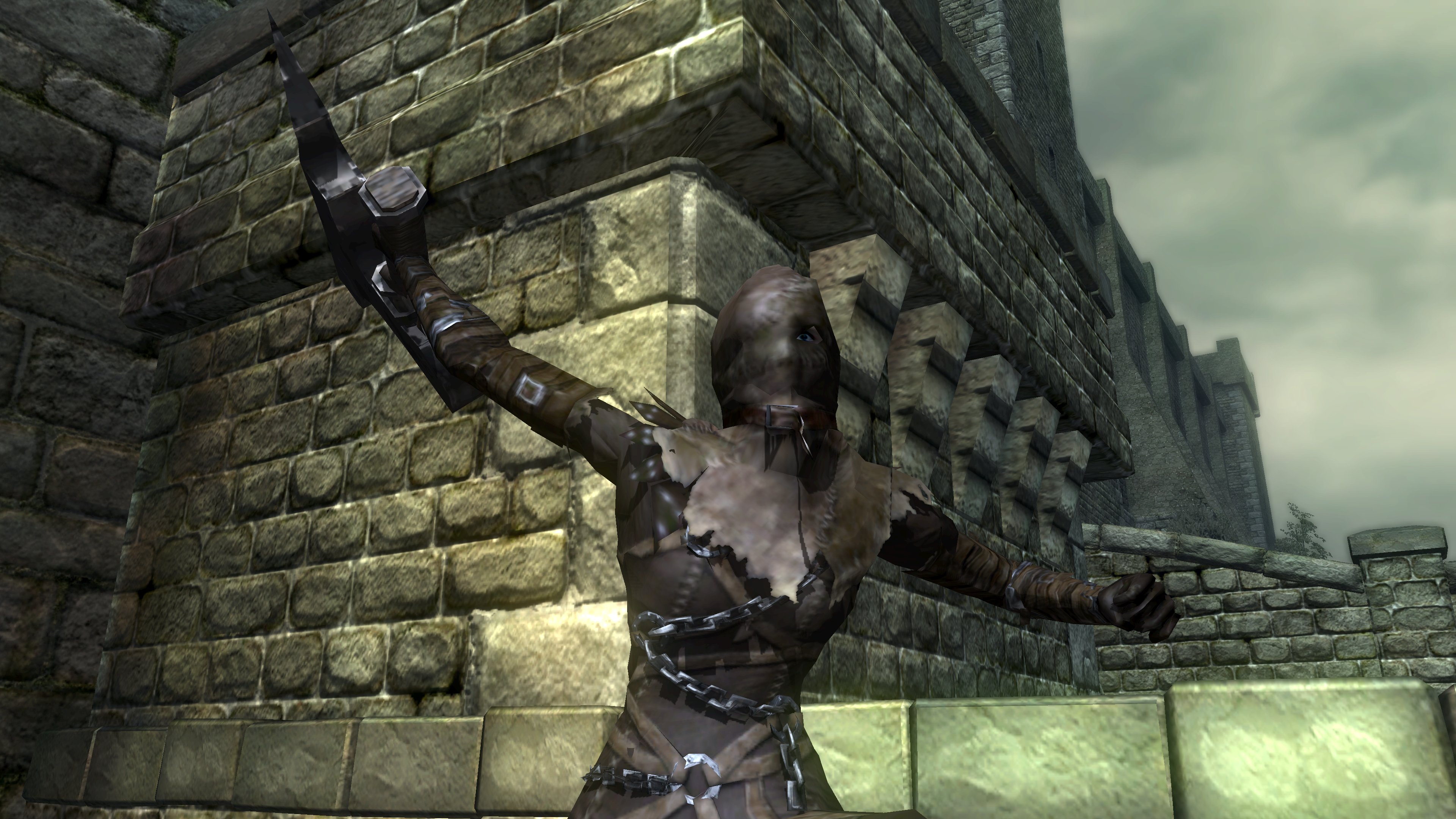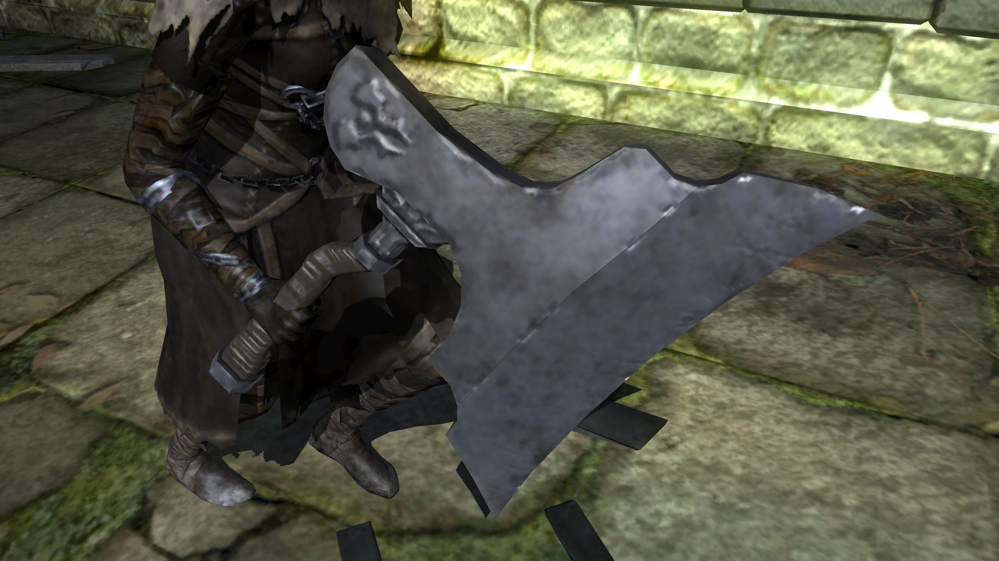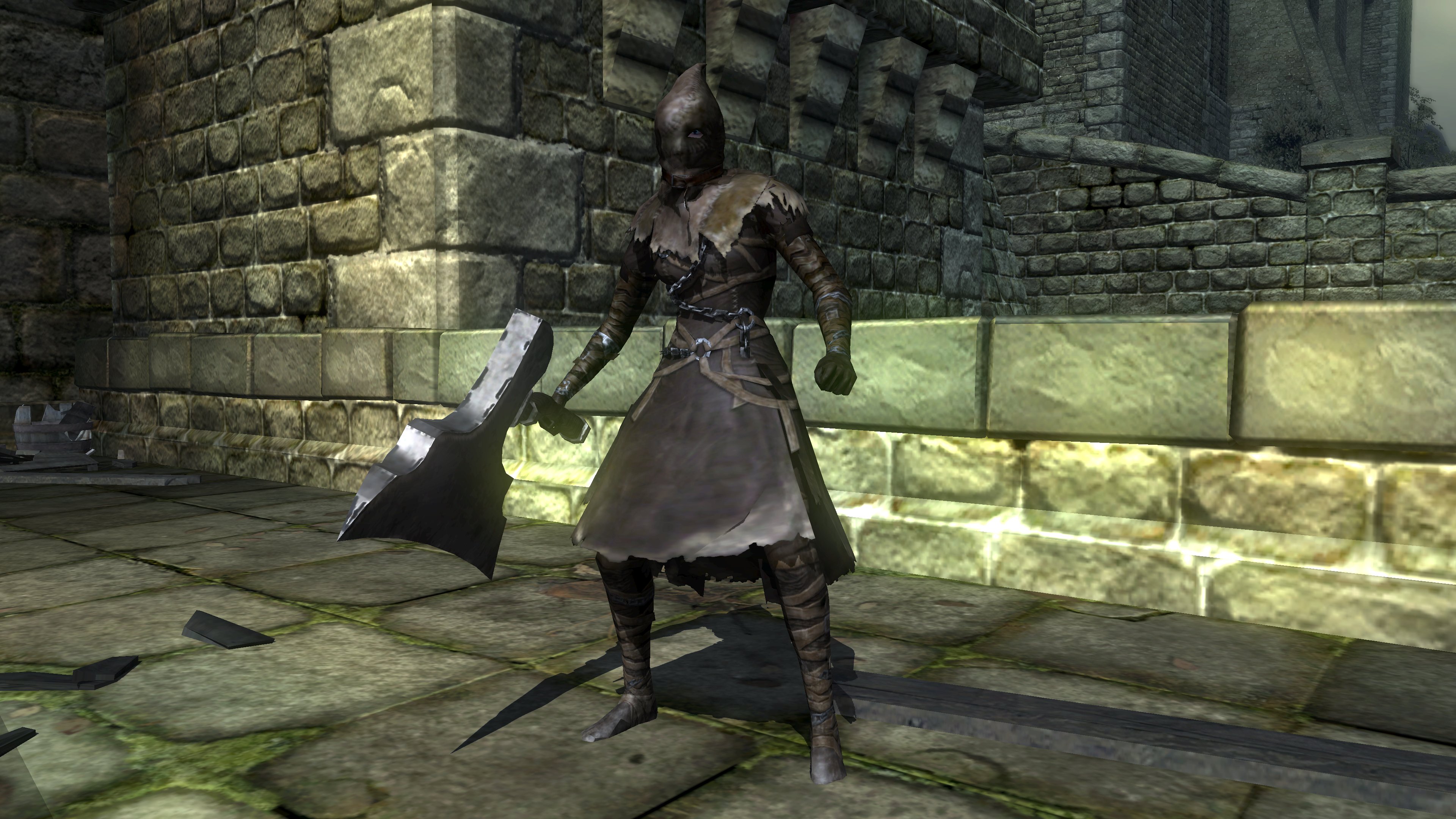 From the river bridge is a side gate to an execution ground in front of the outer wall, where many dreglings arise among the corpse piles as black phantoms. More souls can be seen frantically trying to escape the pit where many of the dead have been unceremoniously dumped, their bloodied bodies let out into the river. Aside from abusing them into submission, Boletaria publicly executed and displayed what slaves did rebel, all for enemy and wall sentry alike to see. The message was clear: die now, or maybe die on the battlefield. And the ones sending this message were the kingdom’s “beheaders”, (首斬人) executioners specially armed with large, heavy guillotine axes designed to sever heads in one swing. Since their axe-wielders can possess it, this group might have included regular soldiers. The army are already physically abusing the slaves, so it may as well behead a few on the spot — more than a few if the axe’s well-worn quality is any indication.