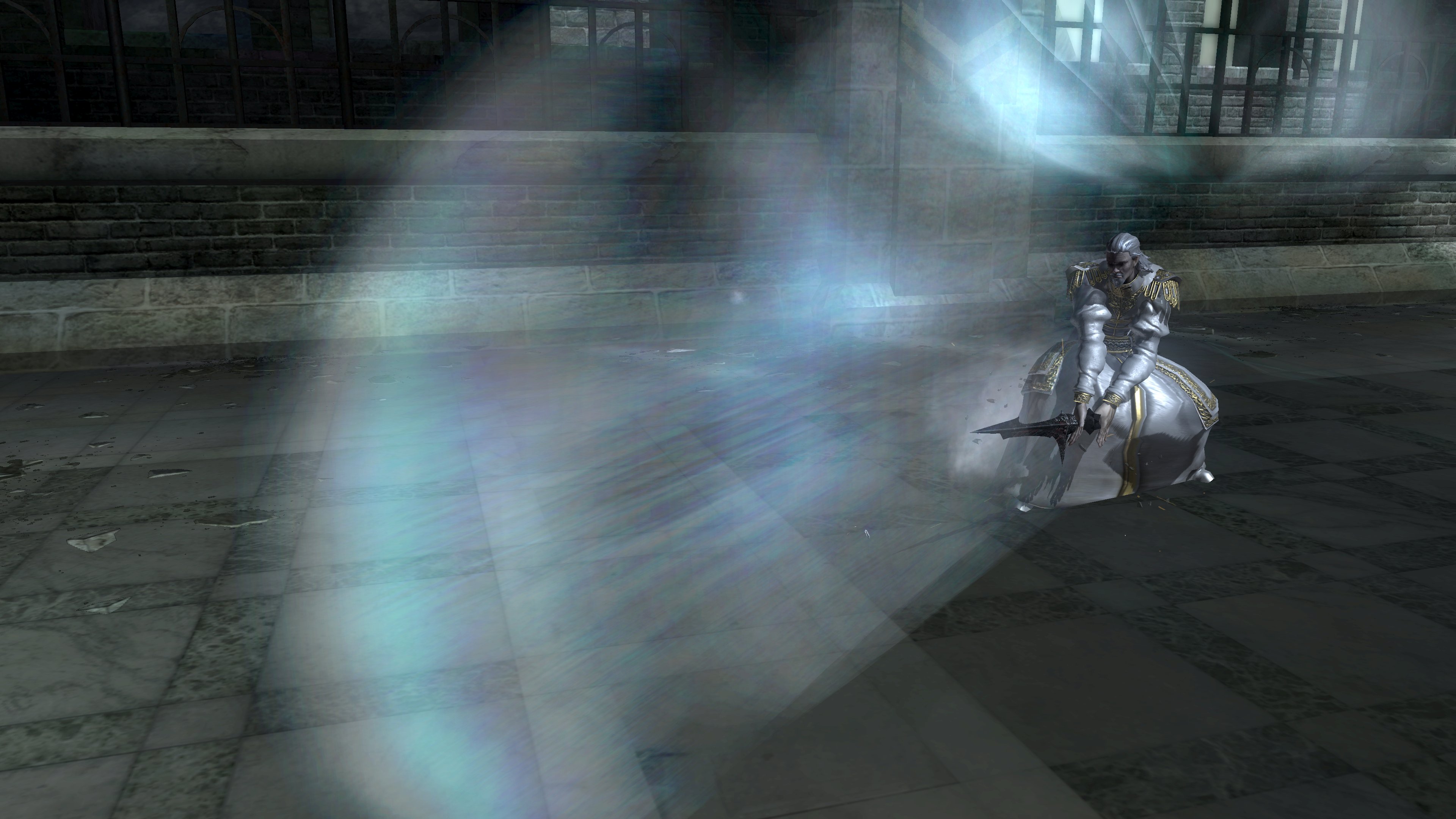 Metas on the other hand was known as the Penetrating Knight, localized as Penetrator; the localization also calling him “knight of the lance” is simply an erroneous translation of said title. Nevertheless, his exceptionally long straight sword is best suited for penetrating thrusts, and thus requires equally exceptional strength and dexterity to properly wield — Metas rose to the challenge. Light Weapon is a spell derived from the knight’s demonic replica, functioning as a more powerful version of Enchant Weapon. The fact that it symbolizes the Penetrating Knight’s giant sword implies Metas to be a better than average swordsman, his title further indicating that he could pierce any defense. And while the black phantom wielding the penetrating sword wears a mix of the chain mail, plate, and fluted sets, this is presumably to convey someone with his own unique set of armor — Metas would neither want nor need to be weighed down like Alfred, after all.