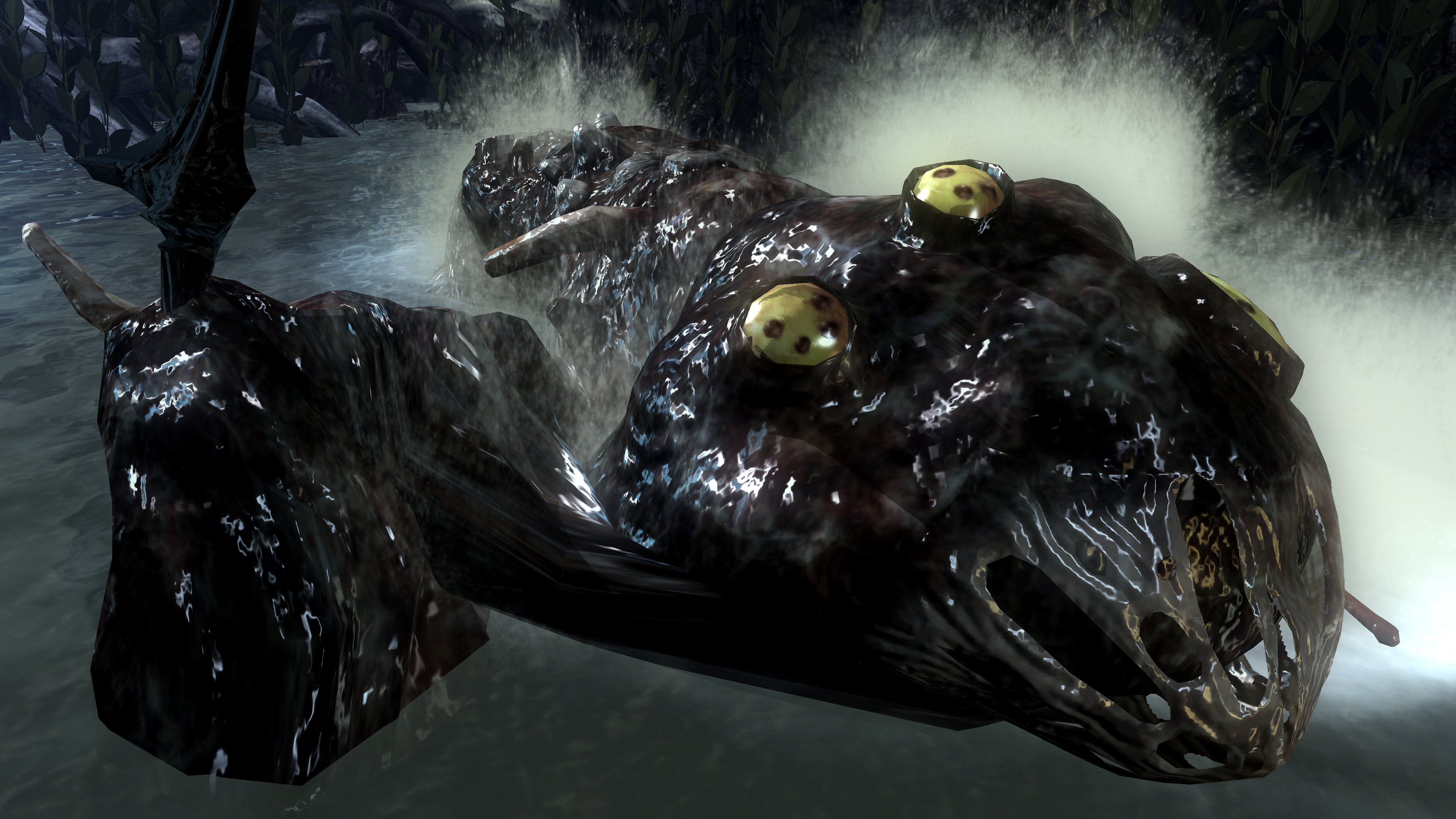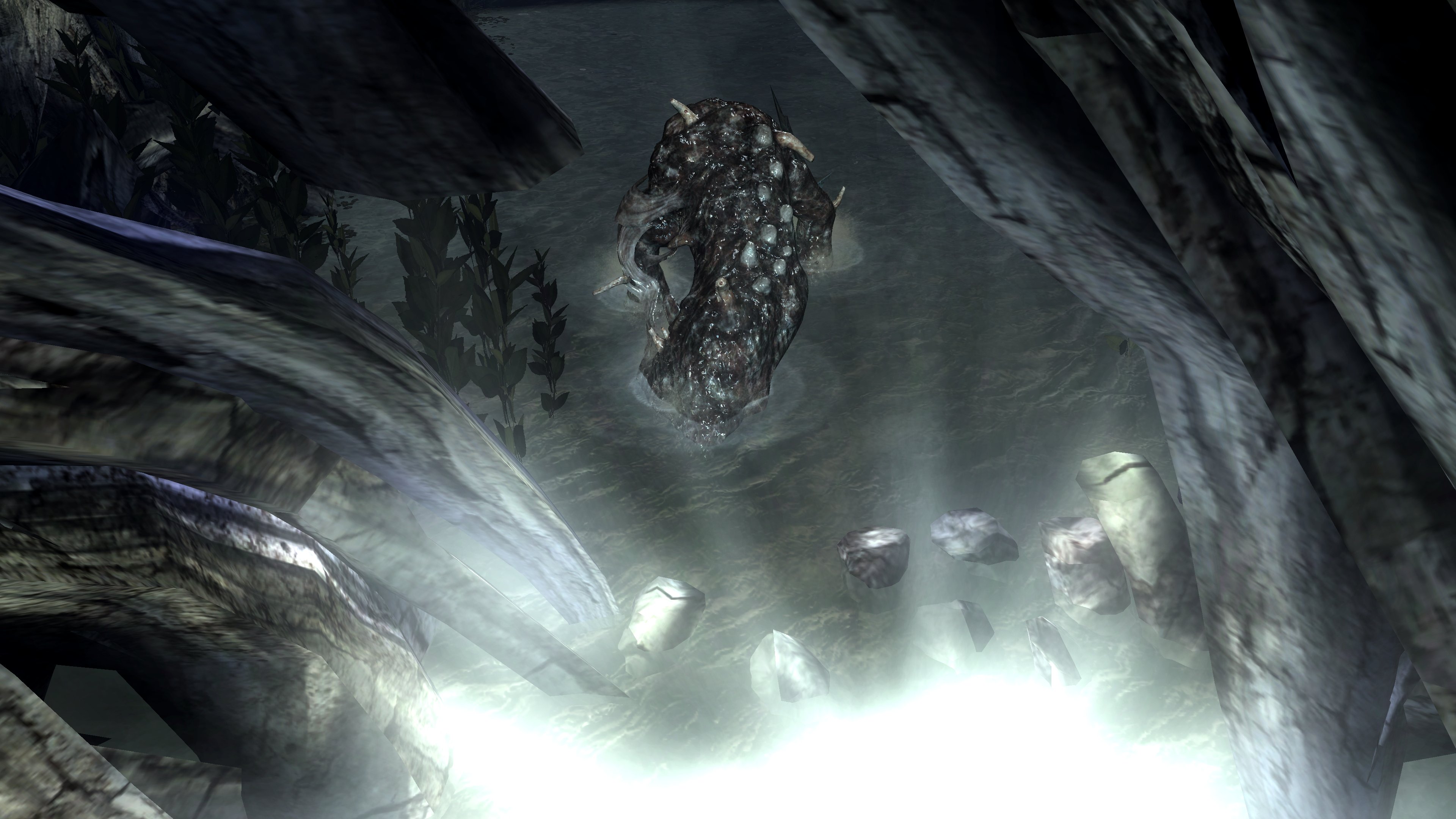 The royalty weren’t the only Boletarians out on expeditions. If we defeat the Vanguard at the colony, we will warp to a ruined temple in a volcanic depression. Cut content reveals that this area would have originally been accessed from a tunnel opened at the back of the Vanguard’s boss room, and we can see large rocks suspiciously blocking the general location of this area from the colony. Despite the presence of a demon resembling the Dragon God in this area, there are slight differences between the two enemy models, and the ruins’ architecture and icons are completely dissimilar from the temple in Stonefang. These are not the same enemies or areas, though they do bear a connection. While we will die before seeing them properly, two mobile wooden ballista stand out in front of the temple, completed with floor levers. This nonsensical setup suggests that this area is just a prototype for the Dragon God boss fight, recycled for the tutorial. The “Dragon God” is therefore just a stand-in for a big, scary demon needed to instantly kill us and progress the narrative; humorous, but not to be scrutinized so heavily.