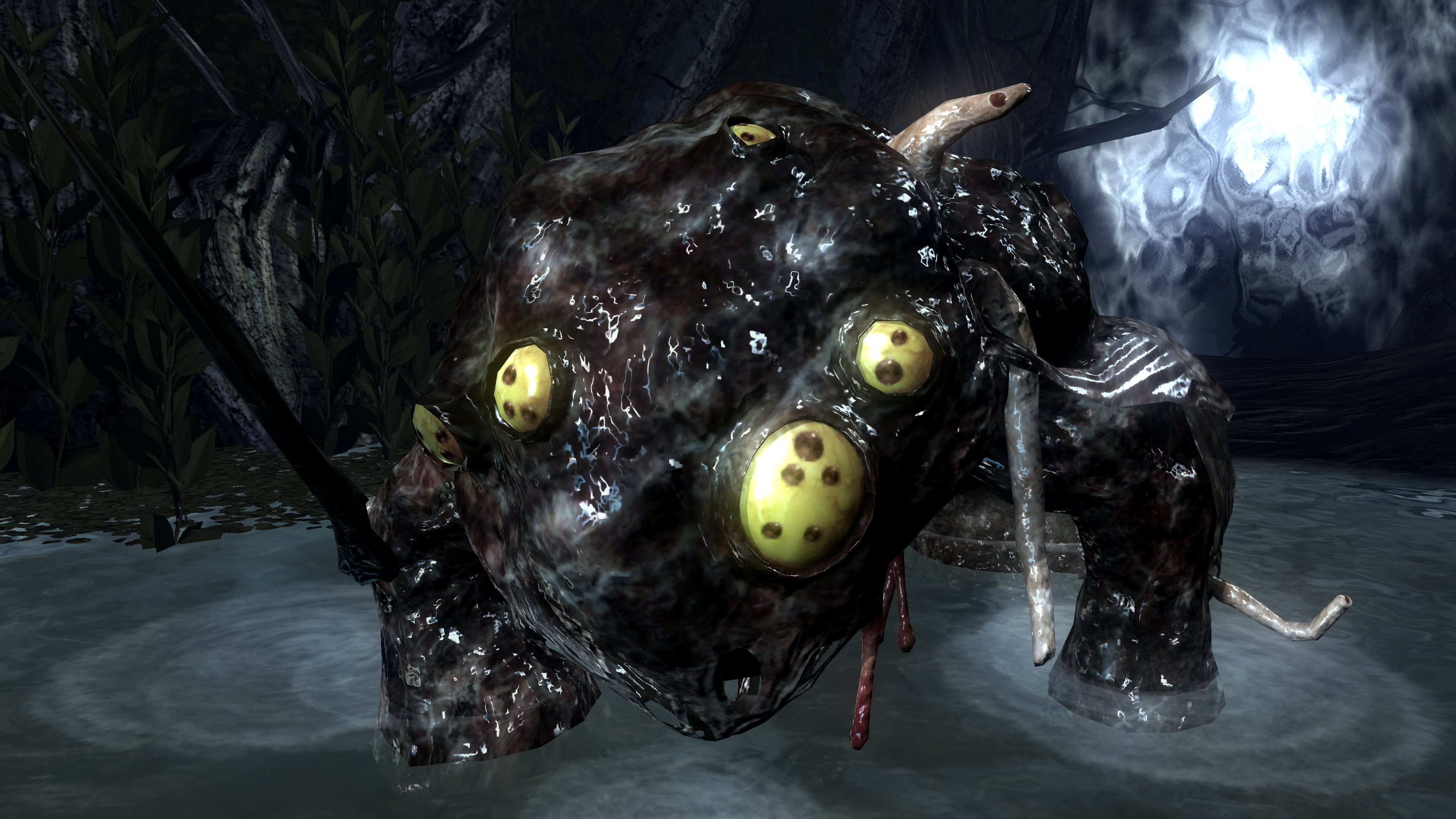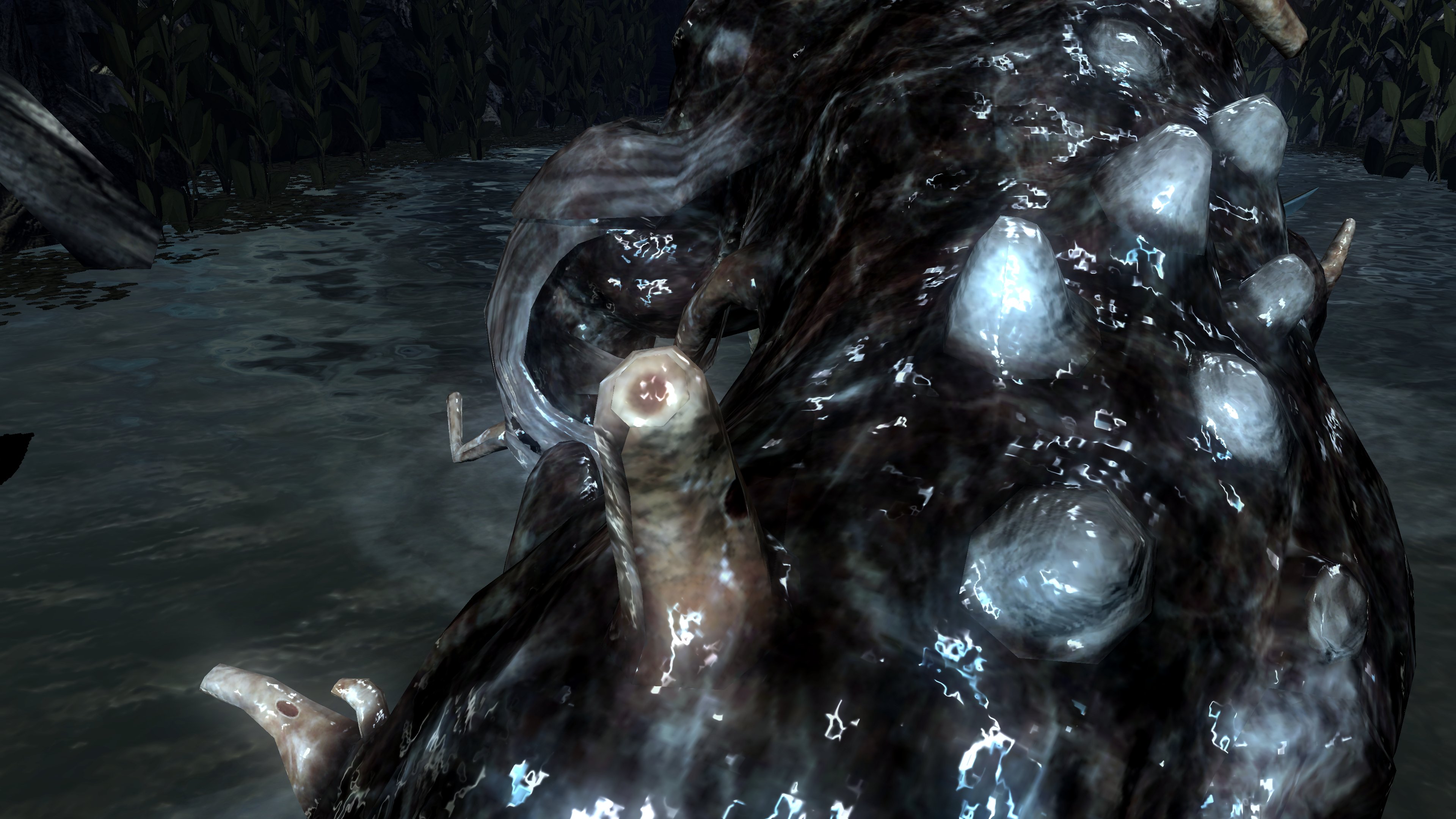 As the website prologue reveals, the depressed monarch sought further power from the Old One, awakening it so that he too might become a demon. In the midst of his melancholy, he clearly still wanted to be someone special, to have some control over fate. In that case, let him lead the crusade against malice! From his perspective, there is no cause more noble than the end to existence, so the idea of becoming one of the demon’s agents likely tickled his righteous ego. But once again, fate toyed with him. When we encounter Boletaria’s last king at the heart of the Old One, he is a malformed monstrosity. His body has turned to black sludge, pieces of large, twisted bones randomly jutting out of the mire. The only remnant of who this creature once was is Soulbrandt, still “held” in his “hand” like always. But even with the blade, the king can hardly be considered a threat; he can barely lift his gooey frame off the ground even briefly. How could a demon be so pathetic? The answer lies in this “King Allant” boss’ Japanese name: “Allant the Failed-to-be”. (なりそこないのオーラント)