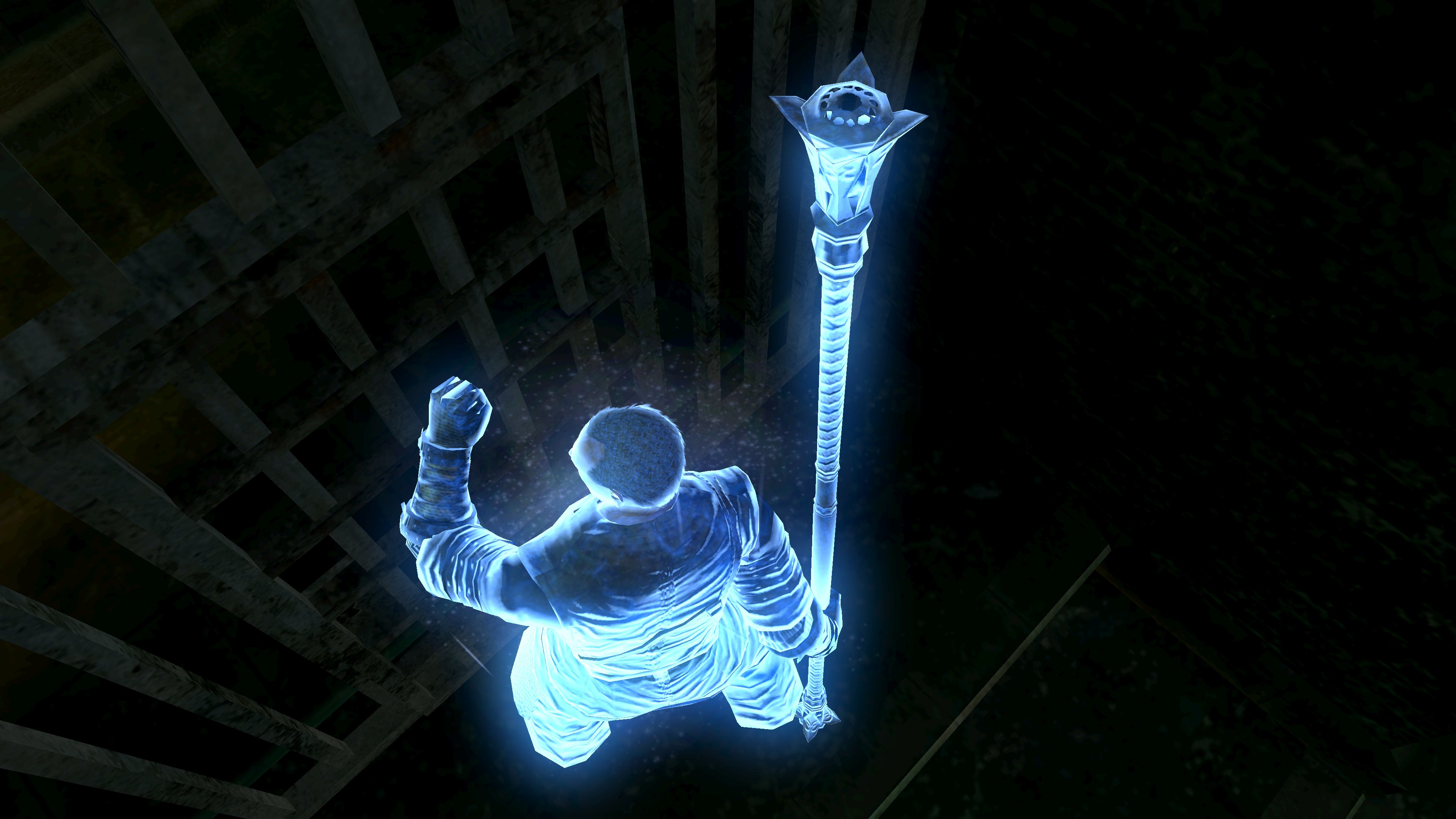 Although it cannot cast sorceries, the pole arm is nonetheless a magic staff, named for the phosphorescent light emitting from the blue gems inlaid at either end of the rod. Infusing crystals with light falls in line with established principles behind the soul arts, and this magic light causes the pole to slowly restore the wielder’s MP. Combined with its refined and rather detailed craftsmanship, and there is no doubt: this wasn’t the work of an amateur. But who is exactly this witch who originally owned the rod, and why is she associated with the sky? In an era largely devoid of magic, can we really believe some random female magic caster in the northern wilderness produced such an elaborate item? Unlikely. That leaves it to be a relic of the Classical Era, and there are only two characters who fit the bill during this period: the Monumental and the Maiden in the Black. If the Nexus is a skyfaring temple, then any of the women there can be considered a witch of the sky. Likewise, a Monumental origin fits perfectly with the Phosphorescent Pole’s excellent artisanry.