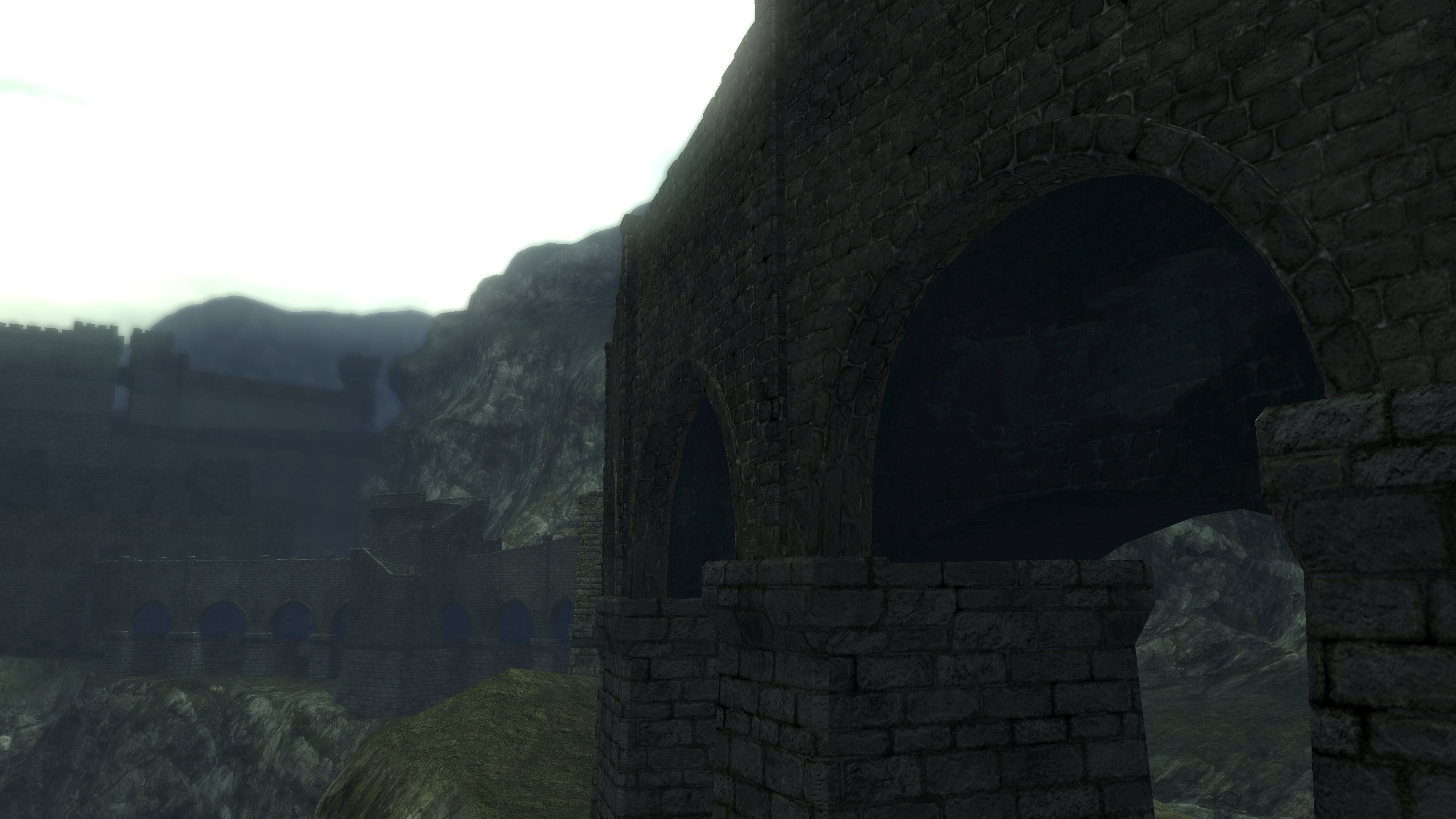 Upon first entering the tear at the southern end of the deep fog, we find ourselves in an aqueduct to a larger settlement, internally named a “fortress”. (砦) Although we cannot explore much of this area in-game, a distant viaduct heading to somewhere behind the visible buildings can be seen crossing a large body of water, and cut content reveals a town on the other side, the viaduct closely lining up with the broken bridge crossing the river to it. This is a Boletarian colony along the southern border, with its own garrisoned outpost. And based on the swampy topography bridging rivers to seemingly open ocean, we can place this settlement somewhere along the similar southern coastline visible on the world map. Comparing the colony’s location with Boletaria’s capital, and anyone can see that the Allants had come far in fulfilling the royal family’s dearest ambition. Boletaria is unquestionably the dominant power of the Medieval Era, all thanks to its unscrupulous strategy and renewed warrior’s spirit. No longer was there a Lone Hero — now stood an array of renowned knights side-by-side against the kingdom’s enemy, chief among them being Alfred and Metas.