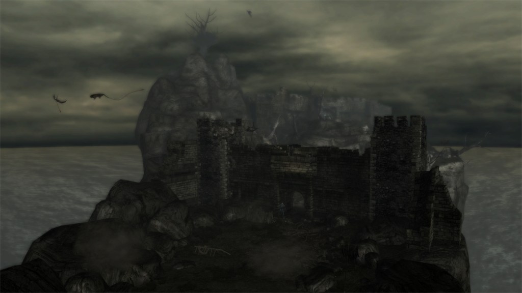 But even if the Shadowmen’s bloodline is dead, that hasn’t stopped the Old One from trying to resurrect it. With the fog having reached the island, the deceased pagans’ conception of their deities gave shape to demons. The Storm King and its ilk now exist, their bone marrow crystalized black malice exemplary of their delight in human suffering. The Adjudicator now towers over the dead, though the fumbling fool looks to have gotten himself stabbed by one of his own knives and broken the blade trying to remove it from his hefty girth. The Old Hero now enjoys an afterlife, even if the demonic phantom seems to mostly remain dormant in his old body. And the Vanguards now haunt the land, diffusing with the fog per their prerogative. Even so, these demons are still too few to do all the soul harvesting. Based on the cloudstone they possess, the storm beasts have turned their focus to the sky, the King likely using its power over storms to their advantage. As for those on the ground, they are discernibly too large to be collecting souls from every nook and cranny. And without any living to soul-starve, the flying Archdemon needed to get creative with its servants.