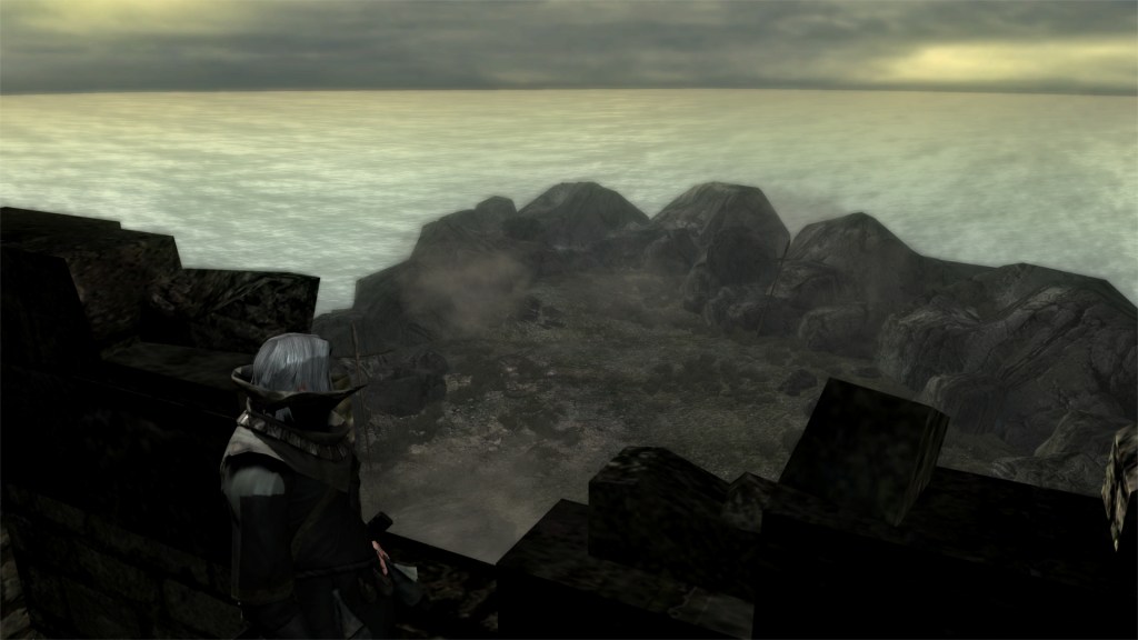 Based on World Tendency, Satsuki has been observing those like us from afar, hence why we can spot him atop the battlements of the fort’s entrance upon first arrival. In our best case scenario, he confirms our skill and comes down to approach us for our next visit. This would imply that he has been looking for others to do his dirty work fighting through enemies and finding the Makoto — in fairness, we do encounter him as a black phantom in the worst case scenario, so he may just be aware of his own limits. As long as Satsuki doesn’t have to put his life on the line, he won’t; again, much like Patches. And that seems to be the Shadowmen’s legacy: a dead and fragmented carcass of a civilization picked at by vultures looking for juicy scraps as it shambles on under hazy skies with an equally clouded history. It would be almost too fitting if it weren’t so pathetic.