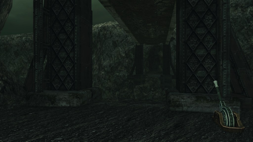 The chariot is the product of necromancy as evidenced by the two-headed skeletal steed parading the rider around. Considering the entire facility is run by skeletons raised by sorcerers in black acting from the sidelines, this seems to have been a policy of the Undead hunt since fairly early on. The chariot’s actual function is simple: circle around the stone circuit and run over any Undead in the way. Even accounting for the scythe blades affixed to the wheels, this method of execution is hardly efficient. Most Undead might get partially crushed or dismembered the first time, but it would likely take several more circuits before the chariot finally killed them — and that is assuming that they would die for good. Any Undead subjected to this would spend their last minutes in repeated agony without any hope of stopping it. But that was the goal according to descriptions of weapons derived from its boss soul. The necromancers supervising this process do it for their own sadism, which reflects in their work.