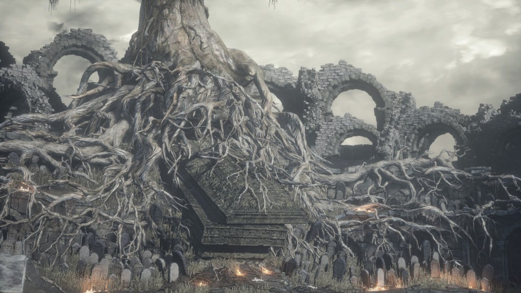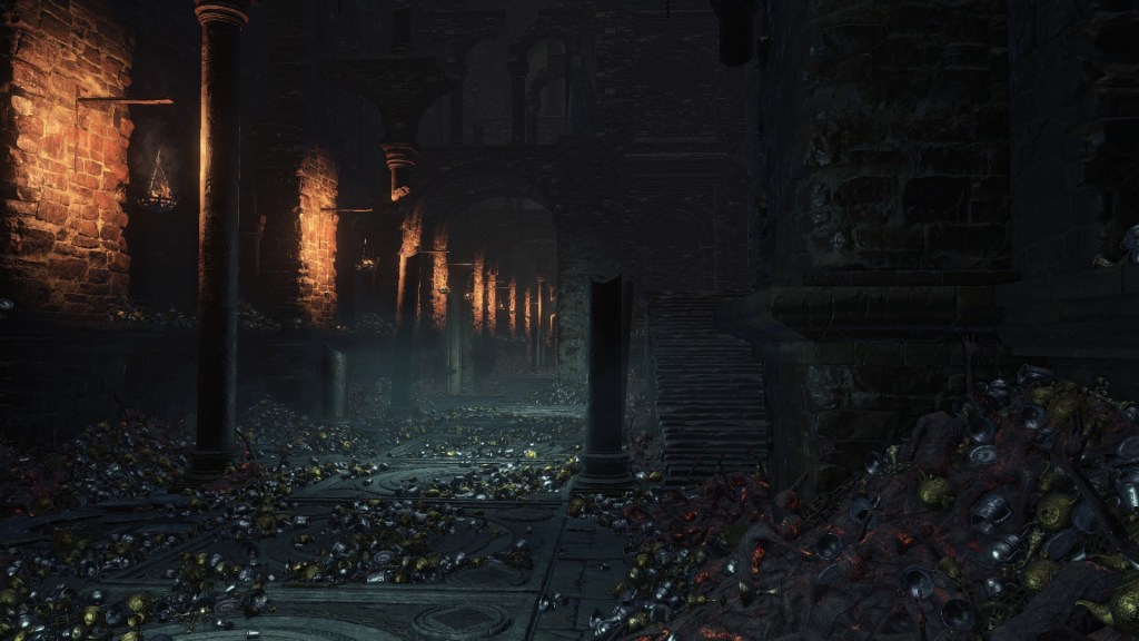 All of this can be credited to the Profaned Flame’s discovery. The Covetous Gold Serpent Ring is found in the part of Irithyll Dungeon overlapping with the Capital, the same part where we find various other items related to the ruined city. It reminds us of greed facilitating the collection of items as well as of the serpent, a symbol of humans who manifest the Darksign as stated back in DS1. It is also makes a point of greed being part and parcel to the desire to throw off that shackle placed on all men. The implication is clear. Like so many countries which had fallen to the Dark before it, the Profaned Capital degenerated to wickedness in trying to get back in touch with its human nature. Researching the truth to man’s curse left the priests with not a shred of godly devotion. Logan liberated their minds; Carthus, their souls. It was men who would chart their own path — the grass linked to the Dark’s dendrification strewn about the city reveals the result. Is it any wonder that this part of the world dominated by the gods wants even the city’s name to be forgotten?