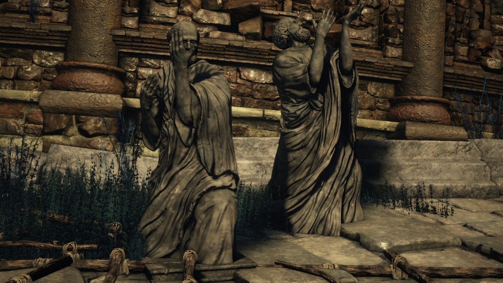 None of this seems to have been intentional, however. The women went on living “carefree”, all but one sealed within the church’s bottom floor. In that chamber, we can find purging stones, with more of these curse-lifting rocks among the corpses and wildlife outside, not to mention a Cursebite Ring — they tried undoing their mistake. Eamon in particular has stood watch over this church of languid grotesques even though his entire city had already long fallen to ruin, himself now old and wrinkled. As the only named court sorcerer, this innocuous character most likely is the “certain” sorcerer related to these monstrosities. If so, then Eamon is doing more than just safeguarding Logan’s scrolls — he is making up for past failure to properly protect members of his own blood. The women’s transformation had clearly gone beyond expectation and left at least some with a guilty conscience. But laden with guilt or no, that didn’t stop them from reaping the rewards of their haywire experiment.