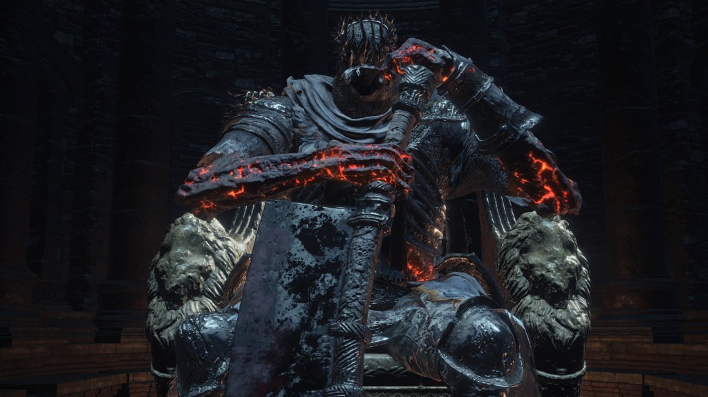 Without a doubt, the Profaned Capital is the most context-dependent area in Dark Souls III. (DS3) With few relevant item descriptions compared to other areas and even a smaller relative map size, first impressions render it the most dubious portion of the game, with the most mysterious Lord. However, dig a little deeper, and this dearth of data proves to be somewhat illusory. There is plenty to draw upon, and what the evidence might lack in raw numbers, it more than makes up for in density. Already, we are expected to have studied up on Dark Souls (DS1) and its sequel. (DS2) Become familiar with a few key parts of DS3, and Yhorm and his kingdom are surprisingly straightforward. I wouldn’t consider them my favorite additions to the series, but they more than justify the investigation.