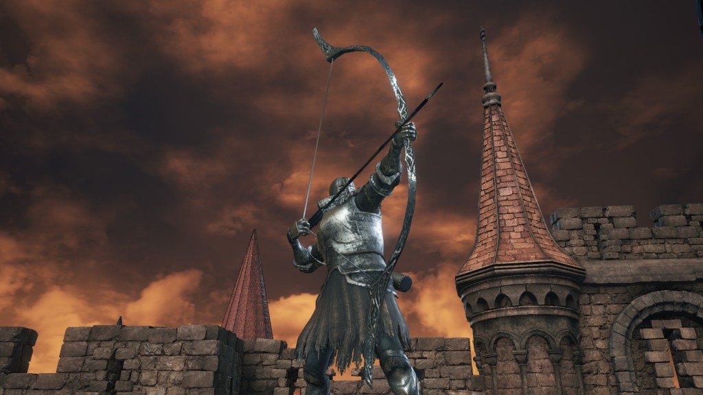 Indeed, much more hints to that conclusion. The Profaned Capital is also home to quite a few rusted and pristine gold coins featuring an angel. While now mainly identified with Lothric, these were originally the currency adopted by the kingdoms in Drangleic and so might still have been circulating the New World during the Capital’s day. We also see that metropolis created living gargoyles, the art of which was the monopoly of Anor Londo in the Old World but more widespread in the New. Even their clergy dress in tall hats resembling the hoods characteristic of Drangleic priests. By all indications, the Profaned Capital was a country inheriting Drangleic culture and so must be located somewhere within its regional vicinity, specifically to its east. The city is where we can also loot both the Onislayer Greatbow and its greatarrows from the far East, implying nearness to it as well. Considering that an Eastern samurai could reach Drangleic and teach the local knights how to create and wield this exact greatbow, trade east of there is more than feasible.