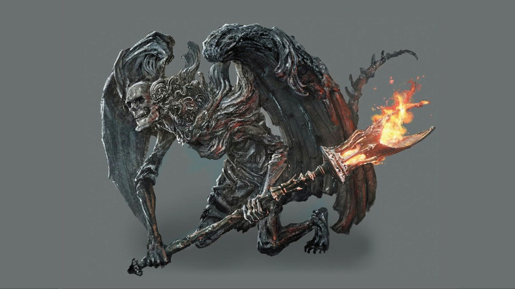 The court sorcerers intentions couldn’t be more blatant. They wanted to apply the principles of sorcery to the Profaned Flame and then spread it to the Capital’s general populace, a stark contrast from Izalith’s approach to the subject. At the same time, much like that other ruined capital, they want to grasp that power to wield for themselves, developing pyromancies to that end. The end goal can be seen in the gargoyles they constructed to preserve the homeland, models of their ideals much like knights in other countries. Those bearers of the sinful flame have human skulls for heads, yet those look as if they are about to be consumed by the flames already enveloping their bodies, seemingly twisting them into their winged, demonic form — or perhaps it would be more apt to say “angelic”.
