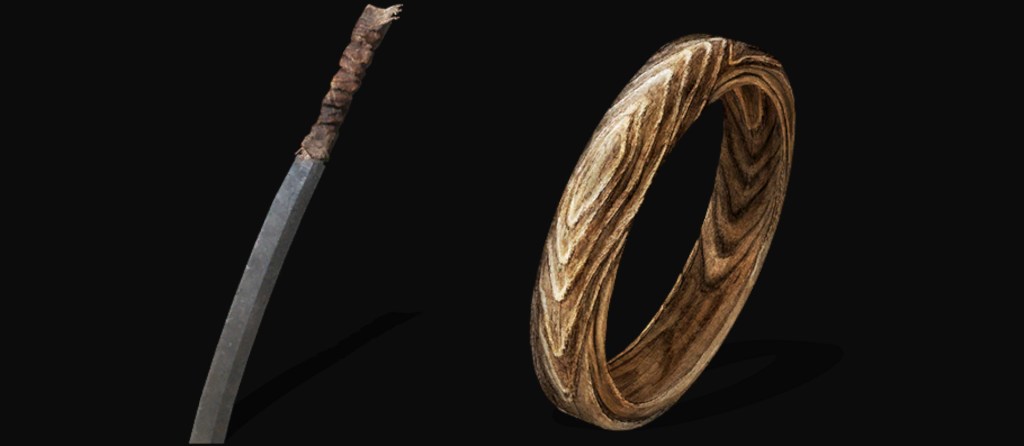 To top it off, close inspection of Storm Ruler reveals the blade to be engraved with some kind of signature, a practice common to Japanese swords. Indeed, the far East’s sword users often add such inscriptions as well. The fact that this is mentioned specifically in the description to the Wood Grain Ring (木目の指輪) implies the process to be rooted in the same metal artisanry, which goes back to when the ring was called the Eastern Wood Grain Ring (東の木目指輪) in DS1 — and implicitly even further. In short, it is possible for this metal-carving culture to originate with the first Easterners, including the wielders of Storm Ruler. Everything supports this weapon being an ancient product of the far East.