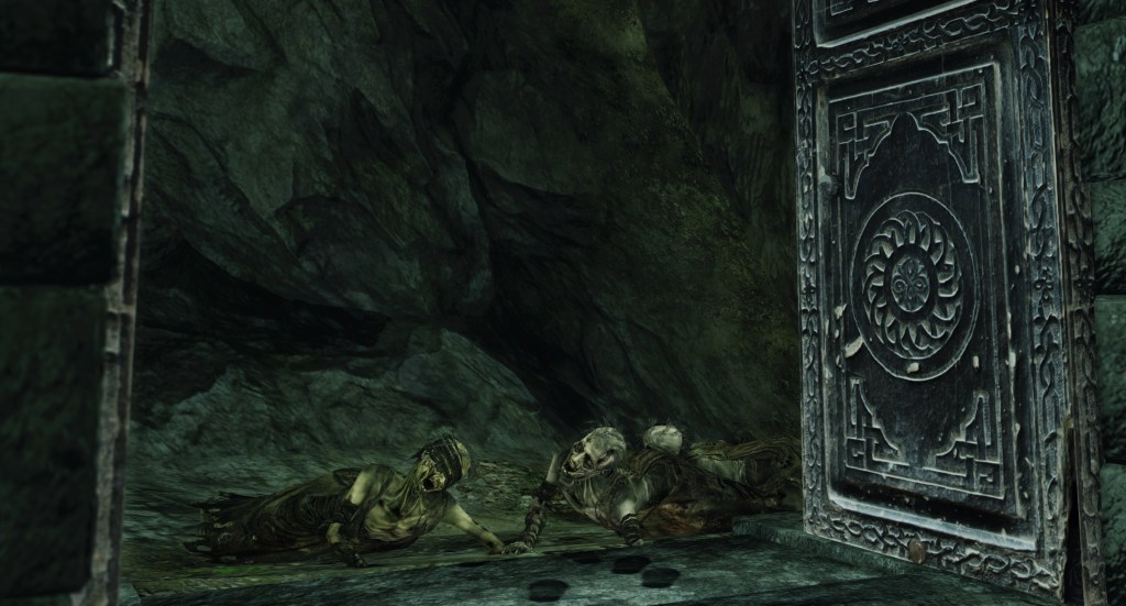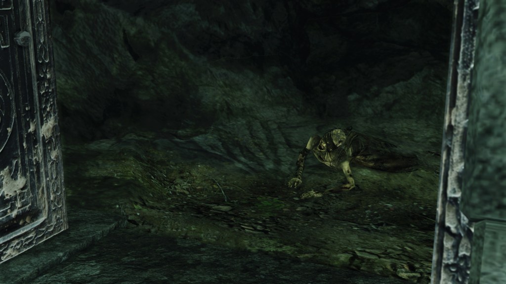 Just outside the Tower of the Dead crawl Hollow worshipers. Clearly, these Undead were hoping to restore their human form at the altar but became too far gone before its flames could abate their curse. Their begging unanswered, someone resorted to providing a less savory form of salvation instead. The Manslayer is a katana evidently never given proper maintenance, accumulating so many bloodstains that its well-worn blade has become poisoned. Perhaps the owner could not be bothered, given the targets of its wrath. We acquire the weapon from a chest hidden in the Tower of the Dead — and the worshipers are the only enemies emanating poison in the vicinity. As Blighttown demonstrated in DS1, not even hollowing can so easily rid oneself of disease. The Manslayer thus appears to have killed the Undead over and over, spreading the pathogens which festered thanks to decayed blood to them just as they can do to us. That explains the Hollows clamoring for the exit, desperate for someone to open the door. More importantly, it reveals both Undead and their abhorrers’ interest in the tower.