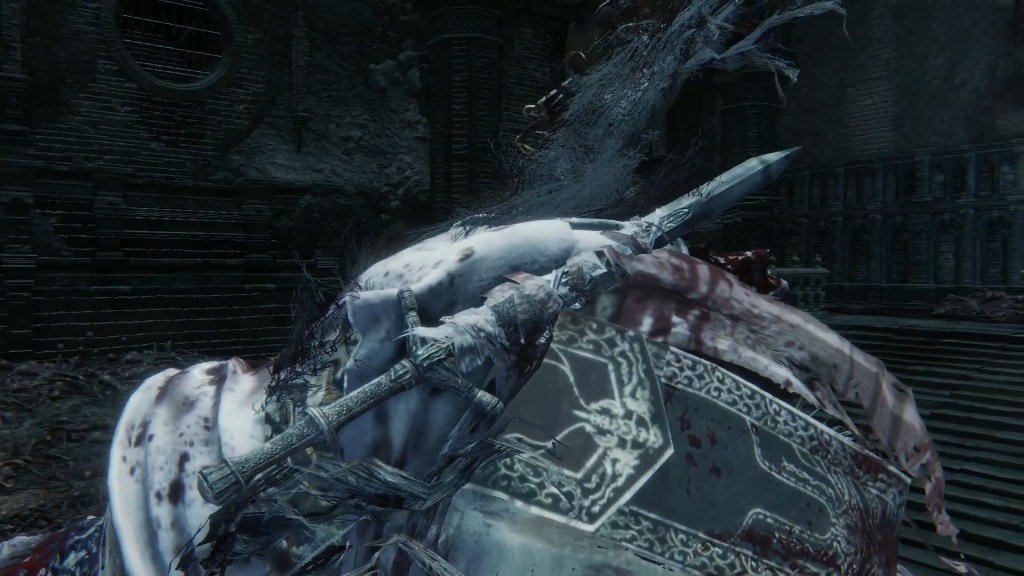 Based on what we can purchase with just his badge, Ludwig’s Holy Blade and Rifle are now mostly relics of a bygone era. The Church Pick has similarly fallen out of favor entirely, now only acquirable from the Hunter’s Nightmare. The rest of the Holy Blades’ legacy has been carried on by lesser church hunters, the workshop still issuing regular sword hunter badges — at least, until the day we arrive. The Yharnamite mob has taken over the workshop, and all the cleric hunters we find are either dead or beasts. The Cleric Beast that jumps down onto the Great Bridge from the Cathedral Ward carries the badge of one such hunter, and the fact that we can purchase the Hunter Chief’s Emblem after obtaining it indicates that the boss was that very captain of the church hunters. None of Ludwig’s ideals have come to fruition, and if we tell him this, he will bemoan his life’s failure as one big never-ending nightmare. He would know, he is currently living through one.