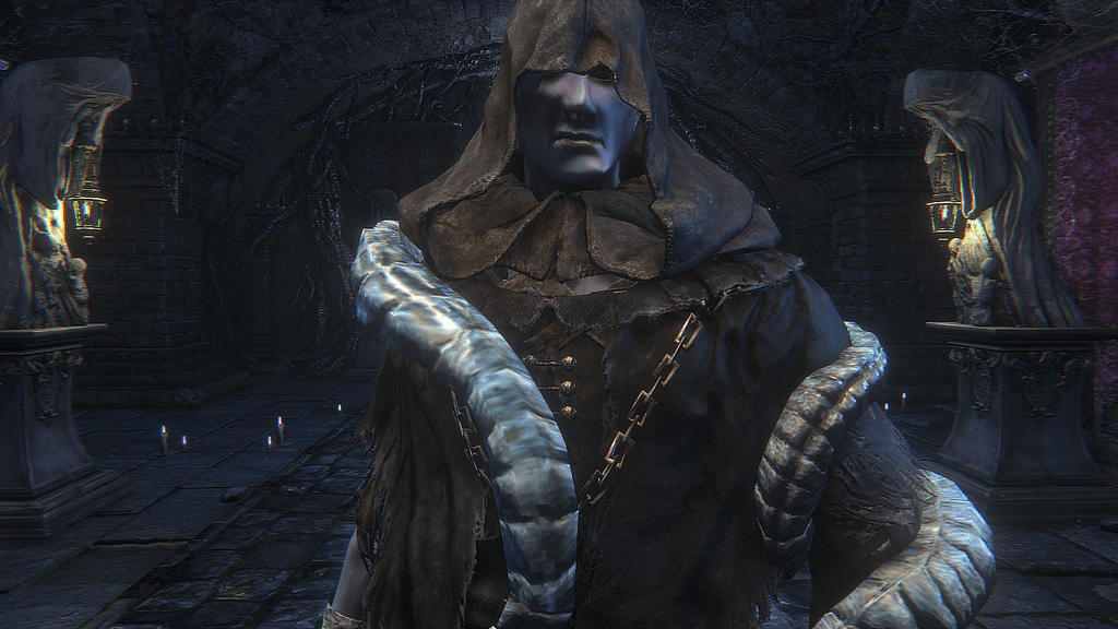 The Lower Hintertombs are home to a peculiar boss, a Forgotten Madman soon followed by the Madman’s Escort. The description to their attire indicates them to be church tomb prospectors. We can also infer them to be Holy Blades since the older escort is armed with a Kirkhammer and Flamesprayer while his charge wields Ludwig’s Holy Blade and Rifle. In fact, it is safe to assume that the younger madman is the Holy Blade, Ludwig. The boss is the only character to use both of the weapons explicitly employed by the first church hunter. His asymmetrical face also matches Ludwig’s form in the Nightmare. Then there is the Holy Blade as his “escort”. Sokkin (側近) more accurately refers to a close aide to someone in power or otherwise important — indeed, who else would clap for the madman’s success as he flourishes his sword after victory? And there is only one such VIP amongst Holy Blades. The question is not if the madman is Ludwig, but why he was all the way down there in the Hintertombs. The answer lies in the arcane forces the pale blue man wields: he was searching for new guidance to deal with the new crisis.