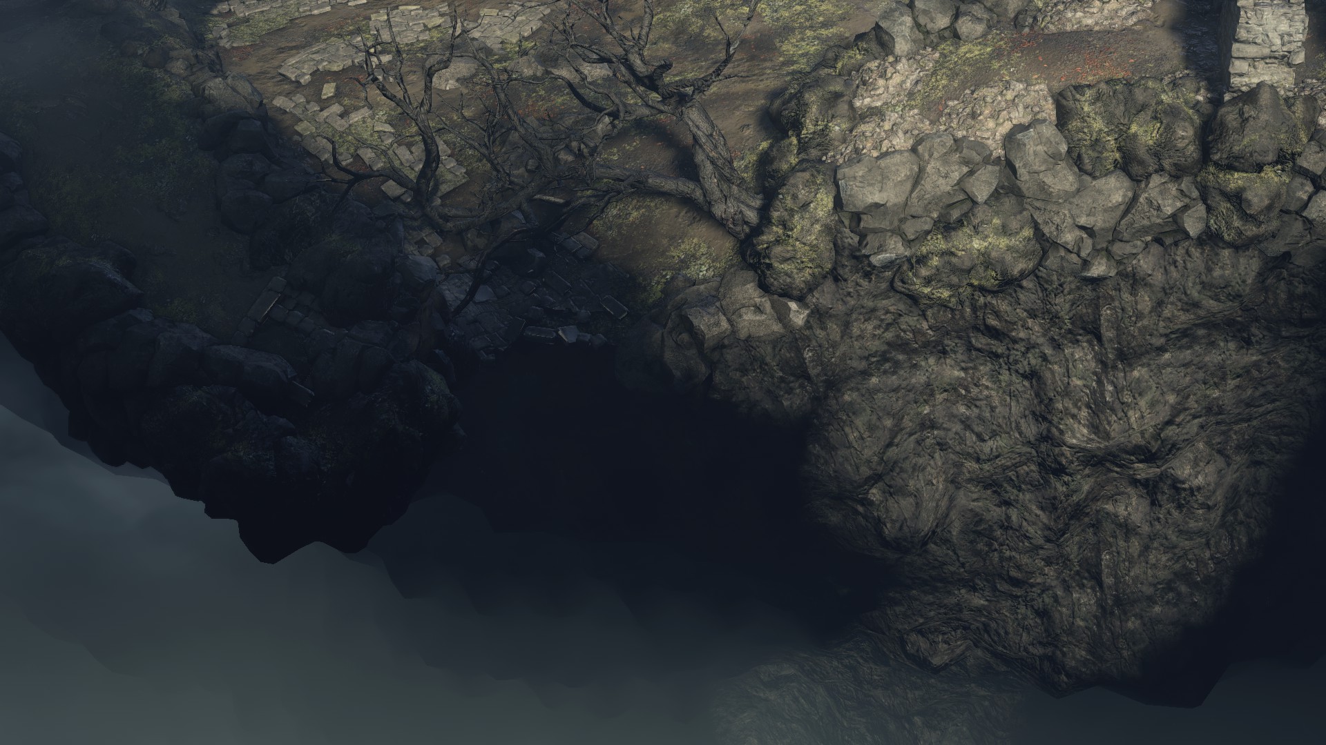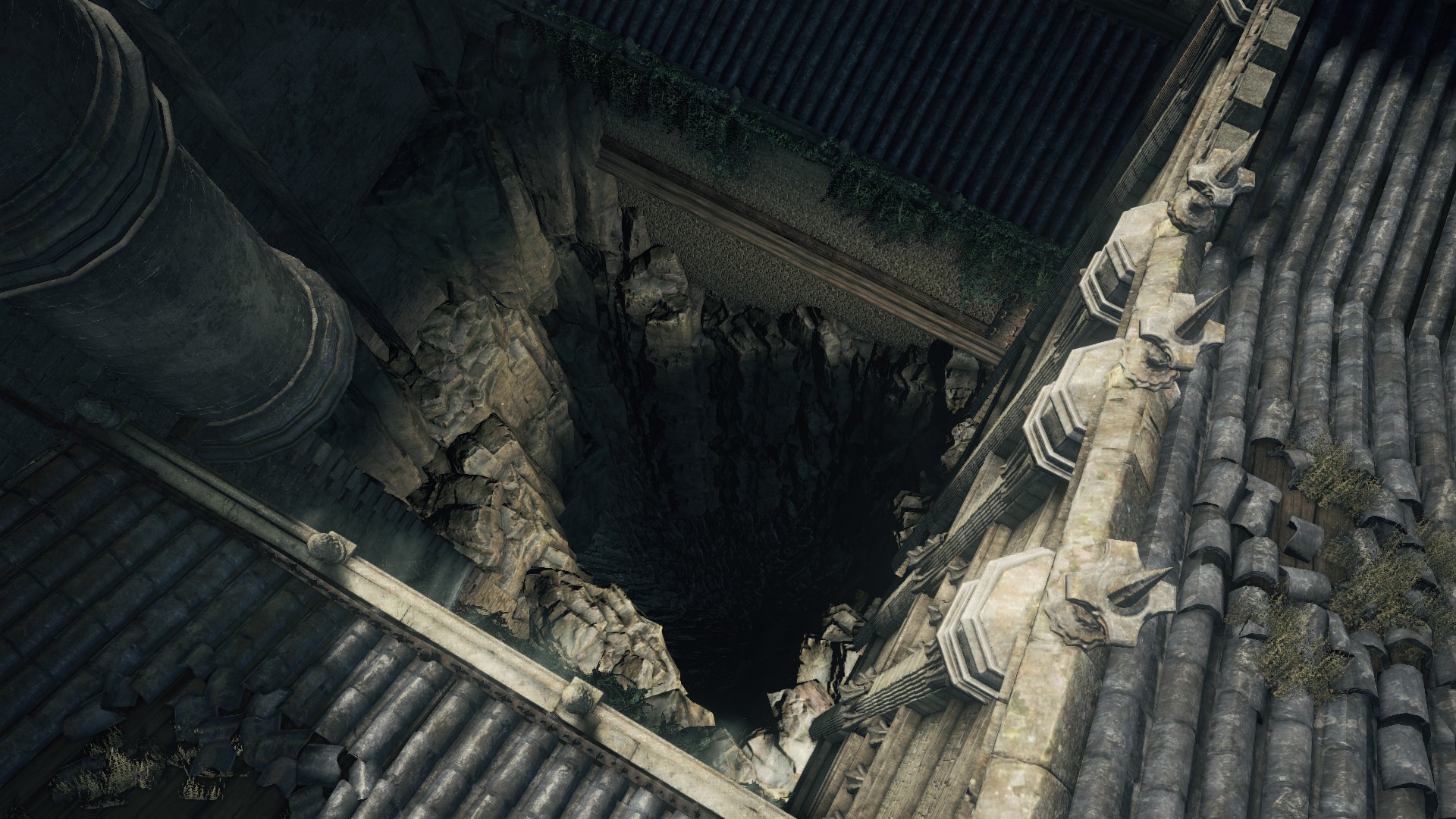 Indeed, close inspection of the High Wall area reveals parts of the city within seemingly torn asunder, gaping holes to deep chasms interspersed among the buildings. In some cases, we even see infrastructure without a base, though this is probably just be a product of lazy map design; various other areas in the game suffer from similar problems without such an exculpatory explanation handy. In the case of the Cemetery of Ash, the area looks to be at an unnatural elevation, fragmented, but looking at the adjacent Lothric walls, we can see infrastructure stretching down to the bottom of the supposed High Wall — in other words, parts that should have originally been underground. There are definitely inconsistencies in this concept’s portrayal. Regardless, we can see similar fissures in the earth in the Undead Settlement also, so we can still safely presume that the immediate region around Lothric has suffered from significant seismic activity. The only question is why.