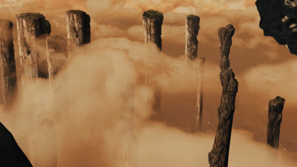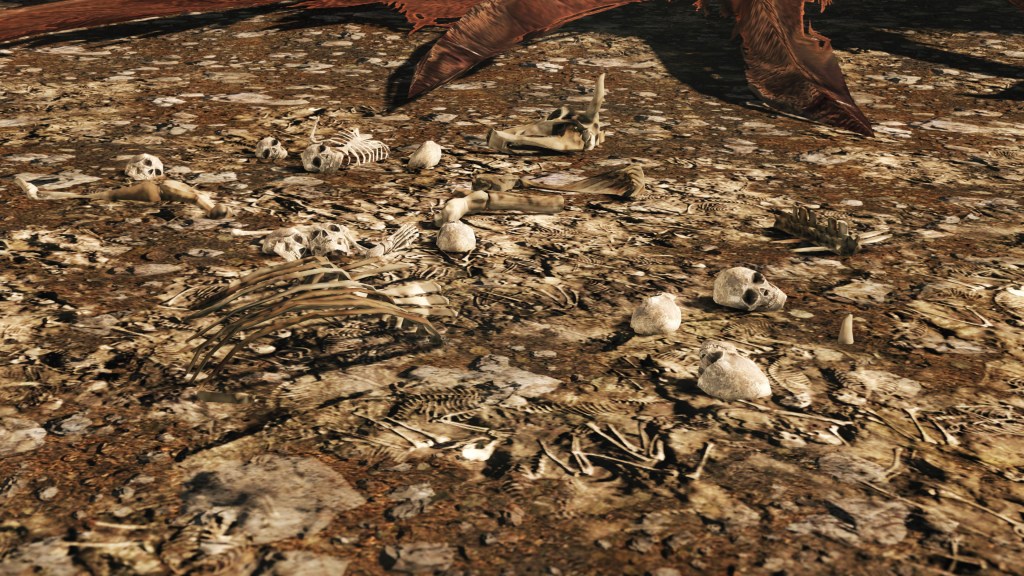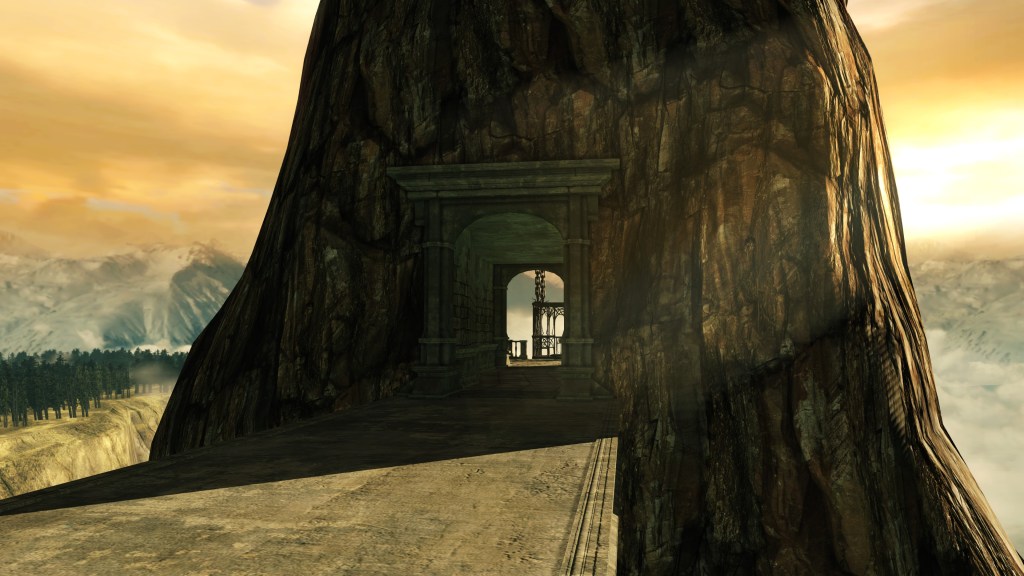 The most bizarre aspect to the Dragon Shrine’s isolation is its flimsiness. The physical barrier of the King’s Gate and Aldia’s Keep doesn’t stop other characters from finding their way in and out, without the help of the King’s Ring we use. It should matter even less to creatures which can fly, especially from so high up on rock formations. And yet, Shanalotte still feels the need to be “released” from her place up there when we meet her real body at the aerie. It is possible that the wyverns’ programming prevents anyone from leaving as much as entering. Even so, one might think that the o-so-powerful Ancient Dragon would still be capable of whisking away a friend craving freedom. But whether because the fake archdragon had no interest to leave or Shanalotte had no nerve to ask, nothing more has come of their relationship. Instead, the crossbreed shared her longing for freedom to bird feathers that occasionally drifted in along the wind.