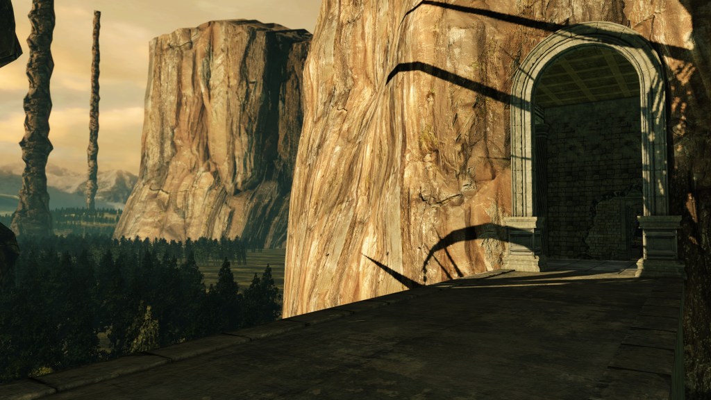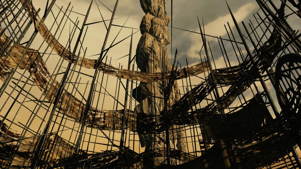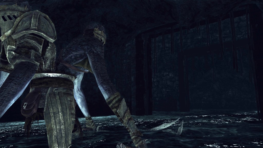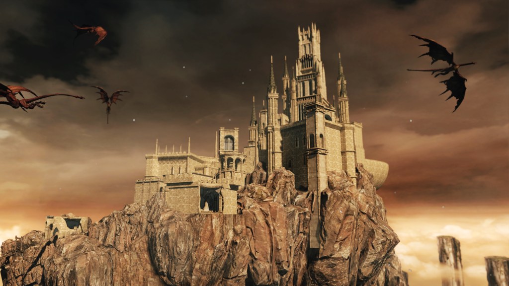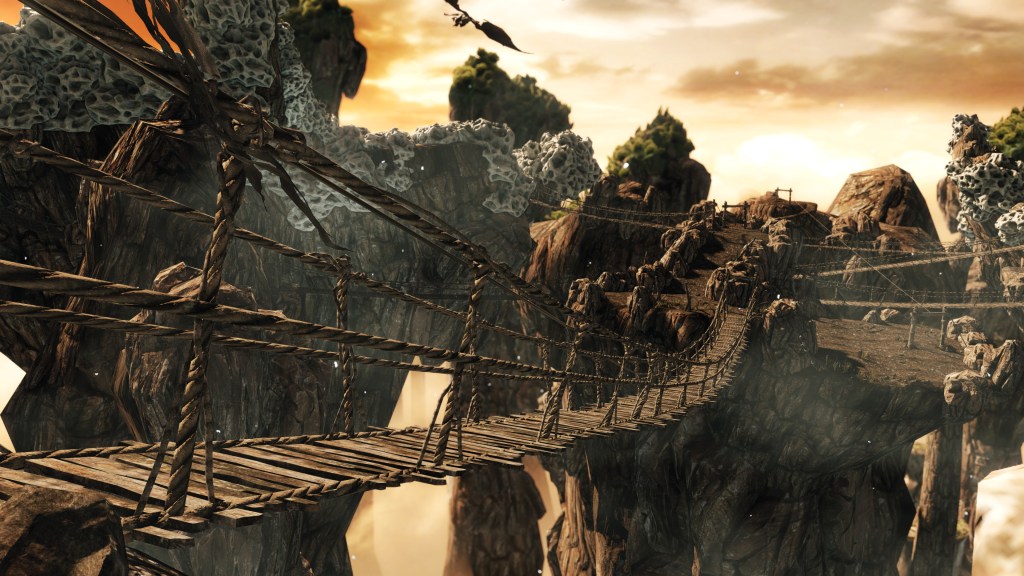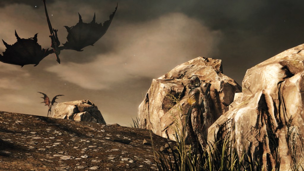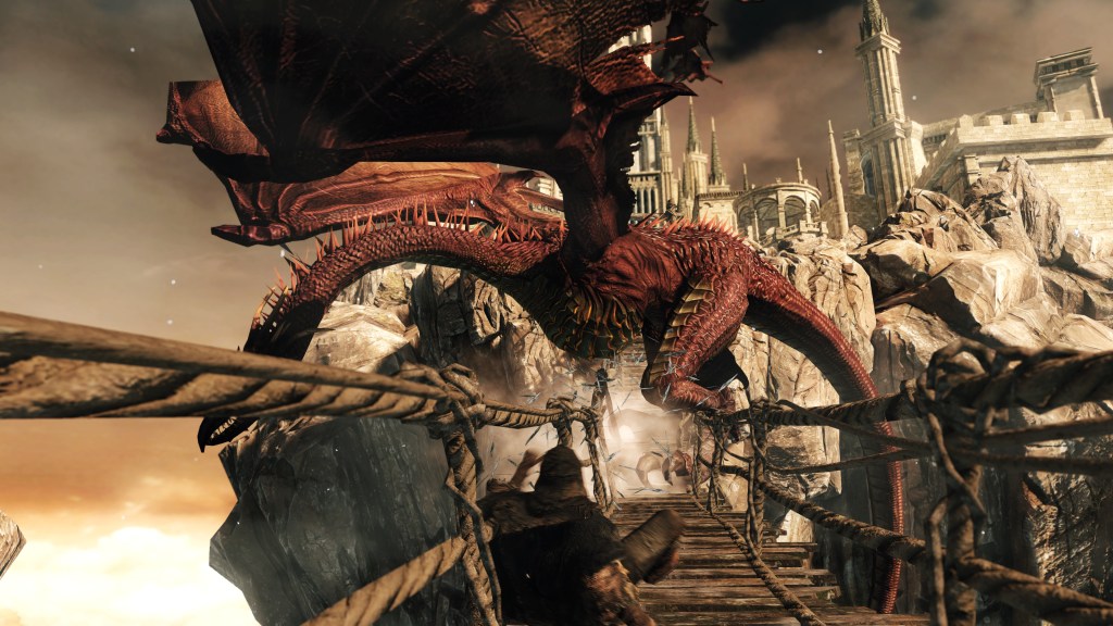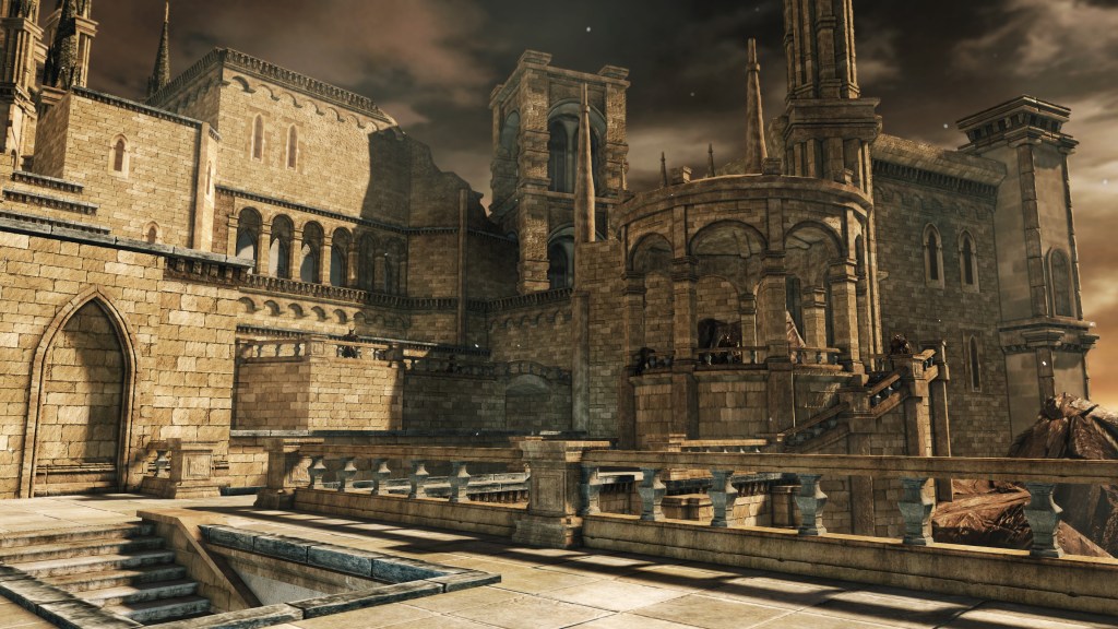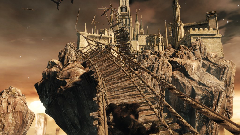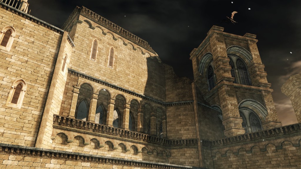 I have previously mentioned my reservations about Dark Souls II‘s main plot, and the Dragon Shrine is very much an extension of that. The area itself is somewhat iconic, essentially an island in the sky with a swarm of fearsome lizards that could swoop down and nab you at any given moment. It certainly leaves an imposing image unlike anything seen in the original Dark Souls, (DS1) and the big fix has even made the tour through the area an experience unlike anything in the whole series. If only the narrative behind it all matched the ambience.