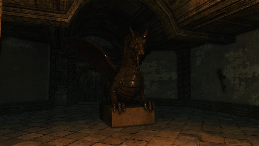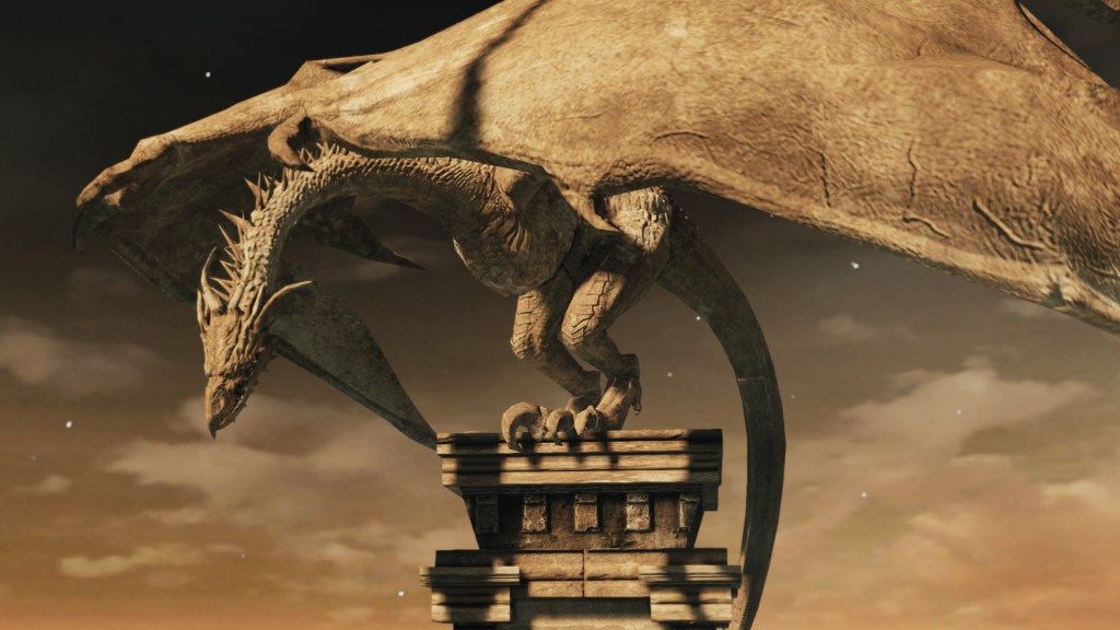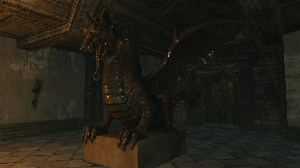 Vendrick’s interest is straightforward. Aldia was promising to provide a new, better option for the futures of his younger brother and all mankind, transcending light and Dark. Hearing even the general concept, the monarch was surely receptive to a third way which didn’t involve him sacrificing himself to a fire or plunging the world into darkness. His pursuit of this path is alluded to in the announcement trailer for the Scholar of the First Sin edition. The trailer begins with Aldia’s narration should we choose to reject the Throne, only it is juxtaposed with Vendrick approaching the archdragon slain by the Lords. Before we entered the picture, Aldia’s third path lay in the stone-scaled dragons of the previous Age, and Vendrick was the would-be king he convinced to embark on this uncharted route. Like everything else involving his elder brother, the Dragon Shrine was probably constructed with the king’s backing, not realizing the full implications of Aldia’s planned experiments. As always, he saw the dragon as the means to victory, his own false idol to prop up.