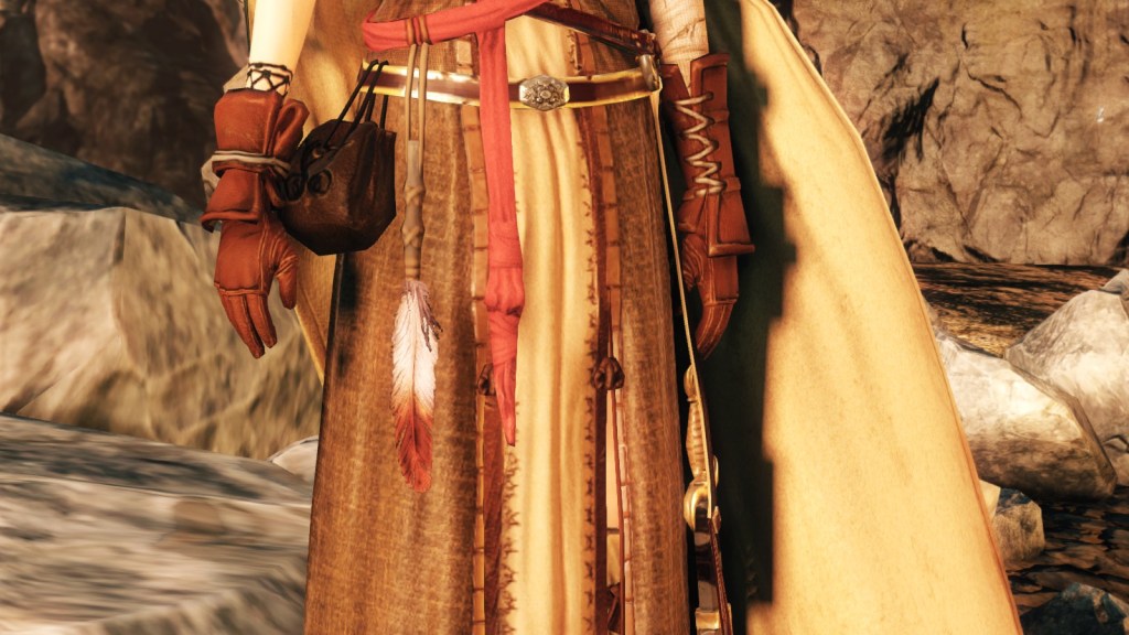 The half-dragon seems to be a collector given that we can spy her holding one feather while another hangs chained to her waist, even after gifting us yet another. Unlike cut content, where we hunt for the “estintia feathers” (エスティンティアの羽) the kid Shanalotte wanted as part of her ill-begotten plan to boost her popularity, the final game’s version has nabbed them to pass the time. The girl has simply loitered around in captivity, making her collection symbols for her desire for freedom. That longing becomes infused into them not unlike the principles behind Homeward Bone — we even use the Aged Feather’s magic to fulfill the bones’ same function. For someone who isn’t an Undead emotionally invested in the bonfire, however, the magic is used more creatively to project clones, whom we encounter pretty much anywhere the crossbreed wants to cross paths with us regardless of distance or barrier.