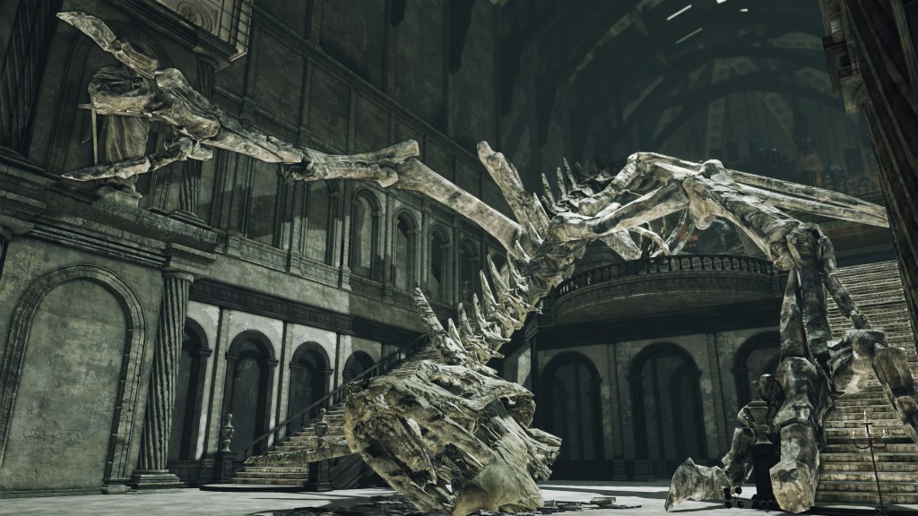 Evidently, one need not be a living archdragon to direct this draconic energy. This makes the egg the only possible source for Aldia’s success in turning creatures of flesh to beasts of stone. Indeed, the petrified somethings and dragon bones acquired from Aldian acolytes, guardian dragons, and the areas they inhabit prove the man’s interest in excavating such fossils. And why wouldn’t he take interest? DS1 has already proven that archdragon bones retain their power, and turning to stone presumably only strengthens that power. Fossilization is typically the result of bones being buried in a mineral-rich environment for an extraordinarily long time. Factor in the principles of the Dark Souls universe, and the idea that the bones of stone-scaled beasts would become stone themselves under the same circumstance is to be expected. Small bones or fragments might not hold much power still, but an egg carrying a complete archdragon, even a juvenile, would have been a monumental find.
