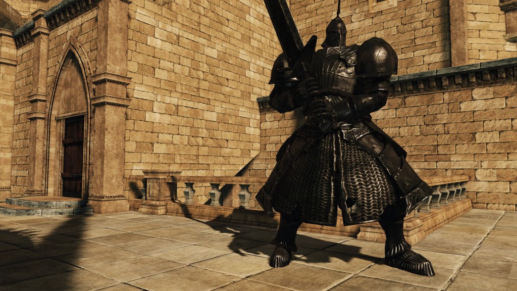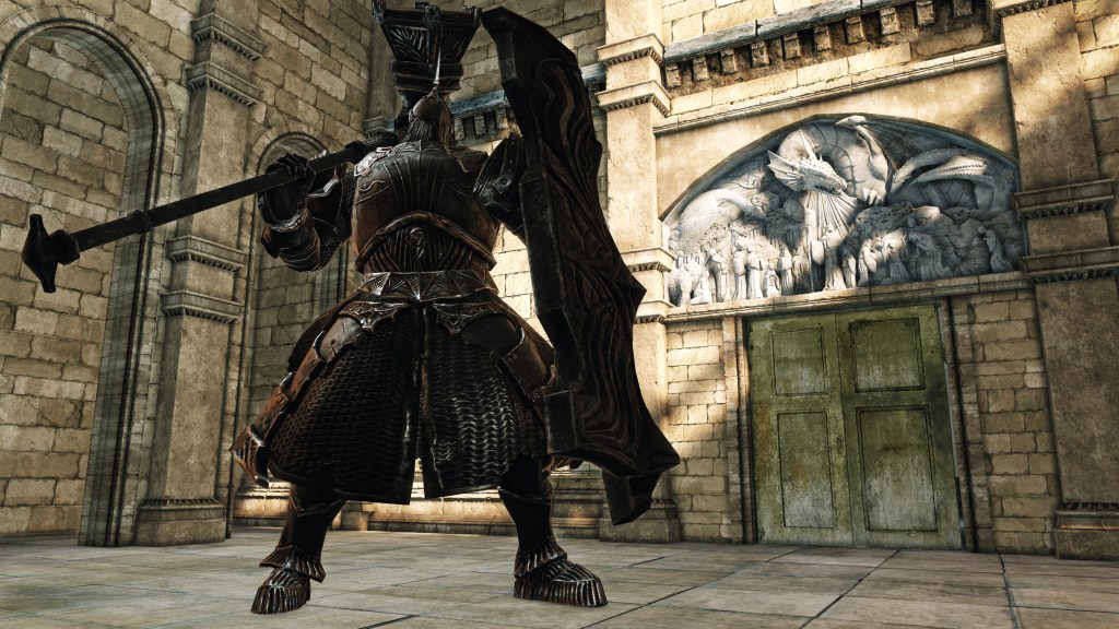These “dragon sentries” (竜の番兵) were assigned to protect the shrine, three gatekeeping the path to the Ancient Dragon while a fourth blocks the door to the egg chamber. Their weapons’ descriptions also make a point of their incredibly large frames, casting doubt on them being anything human. Indeed, they aren’t considered Hollow and look like knights, not immortal dragon warriors. This plus their similarity to Old Knights in both size and attack patterns suggests that they are golems fashioned after their Heiden counterparts. This fits with the drakekeepers’ secondary purpose. According to the weapon texts, the sentries exist to judge the worthiness of whoever wishes to meet the Ancient Dragon or egg they protect — in other words, they are a test, just like the Tower of Flame trials. Given their location and ability to hurl sorceries with their weapons, the shrine’s sentries are Aldia-made.