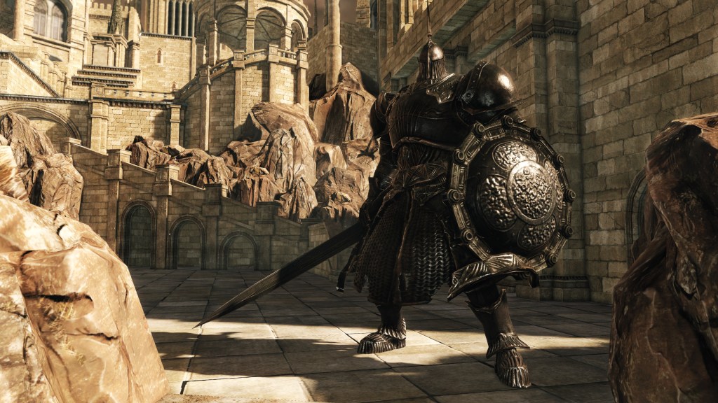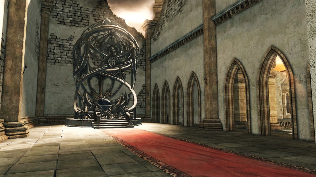At the same time, Shanalotte demands we suffer through hardship to collect souls from the four Old Ones. This is because our only way to enter Drangleic Castle and meet Vendrick is through the Shrine of Winter; the normal road through the Shaded Woods is blocked by rubble. Although the idea that we cannot climb up and around this obstacle is patently ridiculous, the actual requirement to open the intended “workaround” is feasible. The king was trying to prevent others weaker than himself from accessing the warp points to these forbidden lands, and the Shrine of Winter is the easiest to do so. In that case, it makes sense to add a magic lock removed upon detecting exceptionally strong souls nearby. This is why the shrine alternatively opens from obtaining an absurd amount of souls during our journey, whether incorporated into our soul or lost to our Darksign. The latter is why our Fire Keeper is so skeptical that ours has the strength to survive the castle and beyond. But even then, she doesn’t try to stop us.