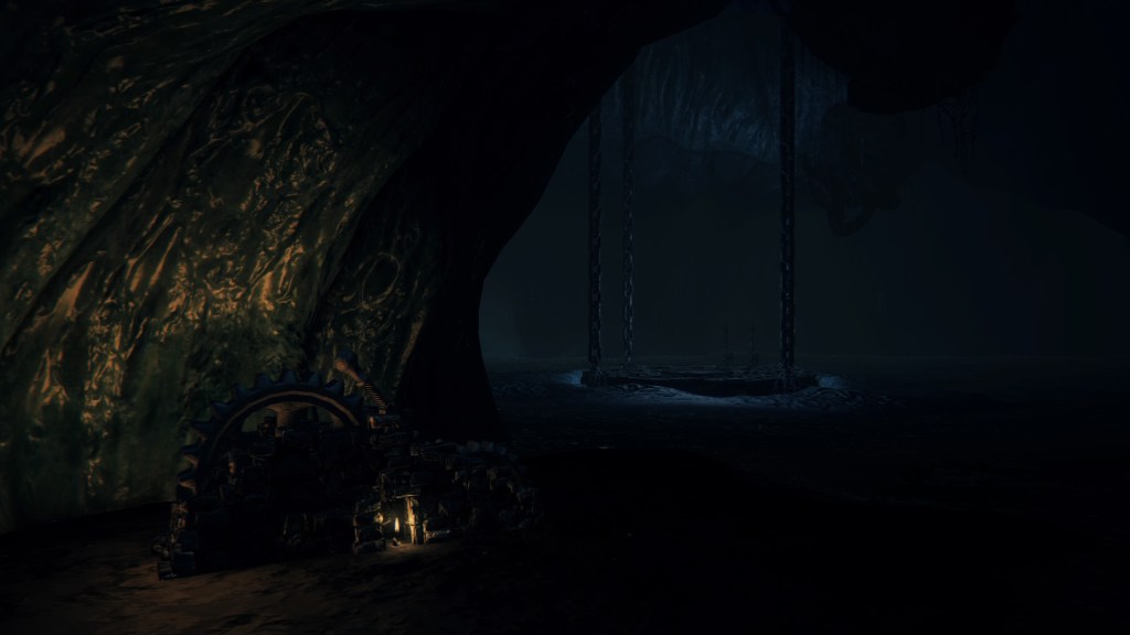 This culturing and consumption of phantasms stemming from Kos for, presumably, generations has gradually morphed the residents into their current state. The women who supply this sustenance likely acquired their form in a similar manner, perhaps additionally stimulated by the parasites replete within Kos. Either way, this requires the Great One’s cooperation. She had come ashore, and her choice of beach is visible from the cliffside of the lighthouse, which has a lift down to the caves leading out to it. The only other possible motive for building this elevator is to visit the — naturally, phantasm-ridden — aquifer for the village well, which is part of the same complex of caverns. However, the well itself already has a ladder to inspect this area, so the lift is more likely to be for meeting with Kos. The aquifer nevertheless implies that a rising tide would fill the caves to replenish the well water, thereby granting the deep sea Great One options while coming ashore. Whatever her preferences, this is the ideal meeting place for the two parties, and that means having established relations.