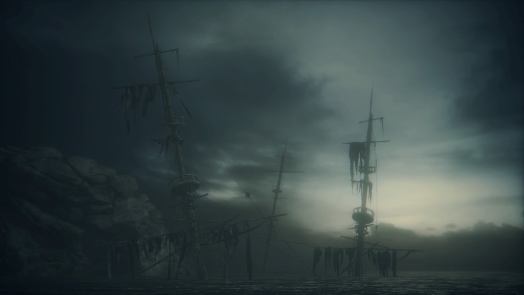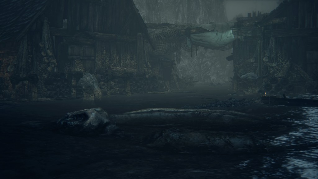 Such provincialism is fitting, since Yharnam and the Fishing Hamlet are relatively close. Although we cannot see the hamlet within horizon of the old capital, one of the hamlet’s priests is familiar with Byrgenwerth, requiring the school be within travel distance. There is also plenty of coastline to Yharnam’s north, with the village settled on a small peninsula jutting from the mountains which characterize the region. Therefore, the Fishing Hamlet must have been likewise founded on the fringes of the developed West, though in this case by foreigners instead of Pthumerians. That nonnative connection to the land would explain their trade in not just fishing, but also whaling.