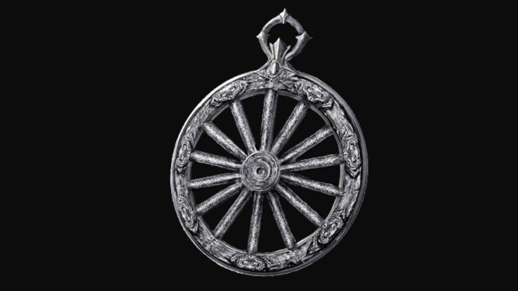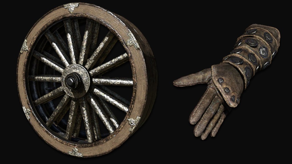 Logarius’ Wheel employs silver in its hub band, spokes, and tire to make all relevant parts effective against corrupted blood. This on top of its large wooden frame demands more strength of the wielder compared to Ludwig’s Holy Sword, making it about as impractical as a Powder Keg weapon. And though it does gain arcane power by splitting into two parallel wheels with the mechanism, this is because of the curse of their later victims’ blood staining the inside. The weapon’s actual trick is the ability to spin the joint wheels, which agitates the grudges — providing more arcane power but eating away at the wielder’s life. This behavior, however, does clarify the Executioners’ fighting style. First, they bash with the front or side of the wheel to incapacitate the target or catch them in the spokes respectively, using the off-hand fist as support. Then they split open the wheel to further entanglement; once secure, let them rip. The spinning spokes drag in the human body and shred it with the momentum. A brutal method of execution, but the perfect symbol of righting the wheel of fortune, thus their emblem.