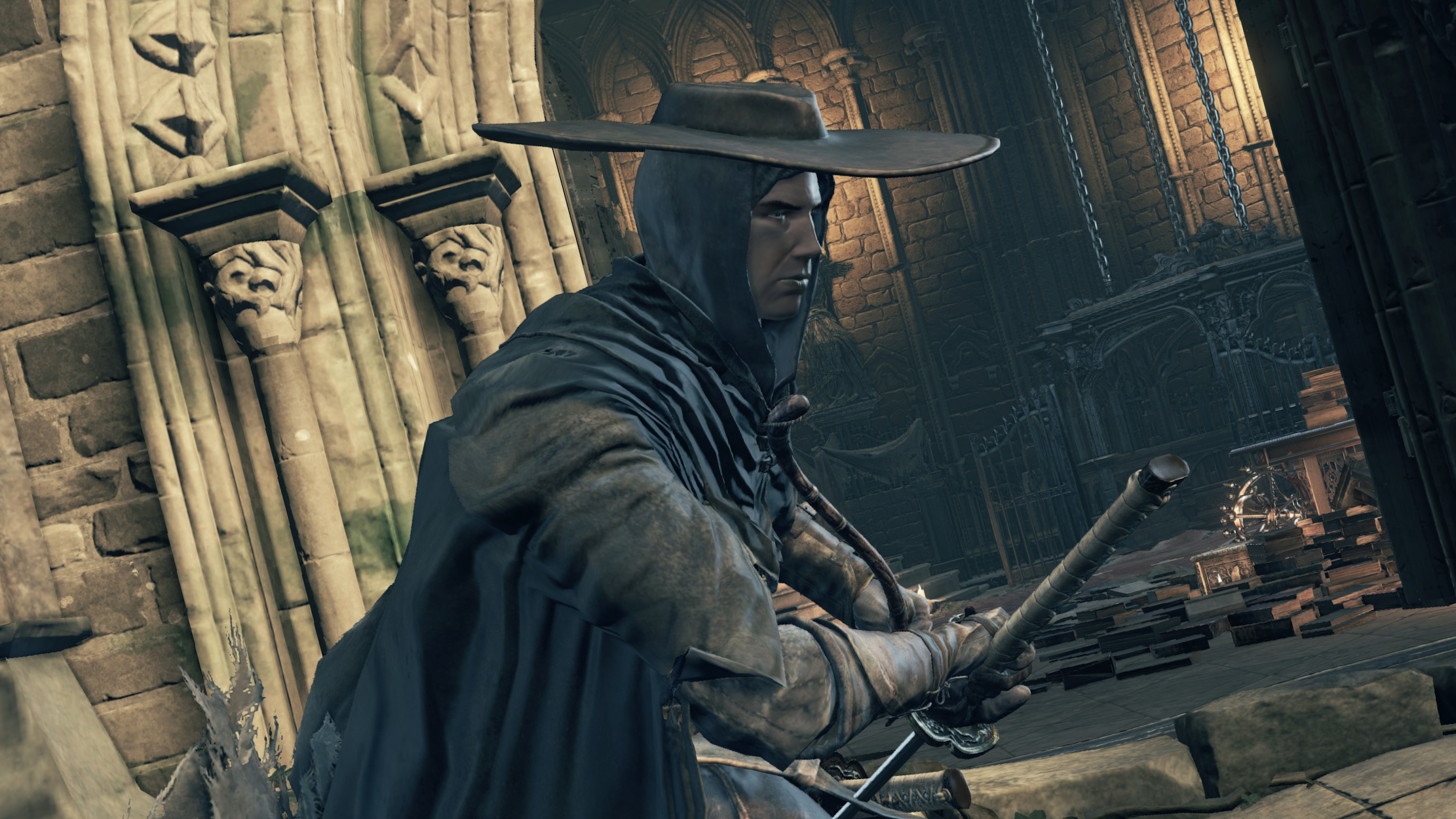Such mercenary attitude earned him the wide-brimmed hat and explains why the Black Hand now protect Princes Lothric and Lorian alongside Albert and Kriemhild. His last king went mad and is unlikely to survive deposition should the kingdom pull through the present civil unrest. If there is any hope for maintaining job security, it is with the man’s heirs. Whether or not Kamui understands the larger cosmological implications to the Twin Princes’ actions — or rather, inaction — he obviously isn’t all that bothered. The other two hunters can squabble over how to end the infighting and restore peace to the realm. So long as there is a kingdom still standing by that point, Kamui need not concern himself with the Age. And if there is to be a royal government, there must be a royalty. If the Undead can safeguard the princes, then his subsequent eternity will enjoy relative comfort and purpose as their secret assassin. That is how it has been, that is how it should be.