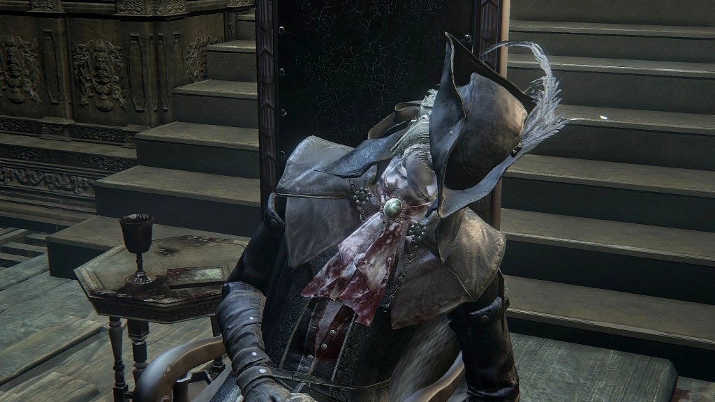 After we acquire the key from the Living Failures, we open the Astral Clocktower and find Maria already seemingly dead in her chair, blood still dripping from one limp arm. It is a classic locked room murder mystery — except, there isn’t much of a mystery. Cut content reveals that we would have initially encountered Maria alive, at which point either we or Simon would kill her to progress the narrative to this point. But there is no way either of us could accomplish this without the key to the tower. That leaves only one candidate: the one person already in the room. In other words, Maria is the culprit; it wouldn’t be the first time. Perhaps through sheer force of will, the lady managed to break free of Kos’ control long enough to try the only method of escape she knows. But the curse cannot be circumvented so easily, as her later — violent — stabs through the chest to produce blood blades well demonstrate. She returns to the living soon enough, right when there is another curious hunter to hunt. From one hell to another again, she is just simply out of luck. Well, she always was the odd one out.