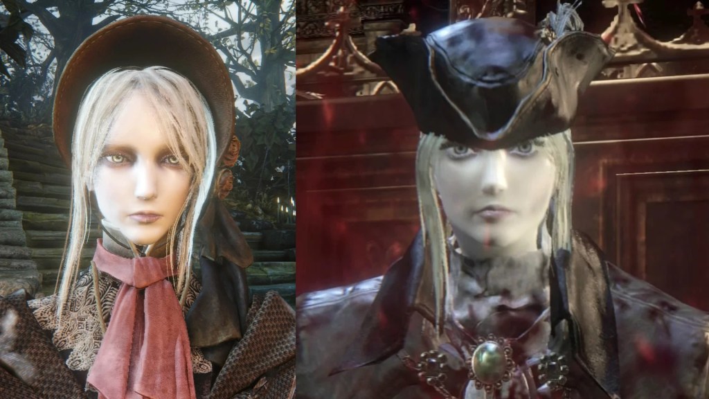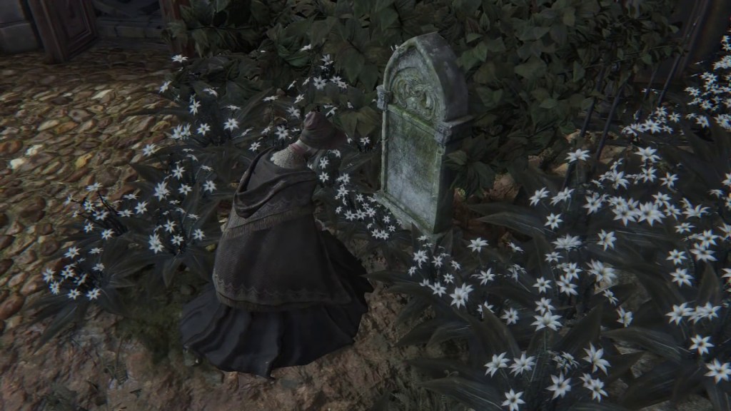 Back in the real world, Gehrman wasn’t taking Maria’s suicide well. After burying her at his workshop, he eventually crafted the doll as a sort of replacement. Perhaps he realized his part in her demise and finally felt guilt. But no matter how much maintenance he gave to the body and clothes, it was still no more than a puppet. One can only imagine how much this unhealthy obsession ate into his other one, especially with how dire the situation in Yharnam was becoming. The hunters needed their leader, and Laurence had just the solution to drag his friend’s attention away from his faux darling. In forging their contract with Flora, Gehrman was granted not only immortality for him and his hunters, but also the doll, brought to life with arcane essence which it might shed as crystallizing tears of blood. This doll of the Hunter’s Dream sounds and acts just like the genuine article. Moreover, it occasionally prays at Maria’s grave, and killing Maria in the nightmare does cause the doll to feel similarly freed. This leaves no doubt that its being is tied to Maria’s soul.