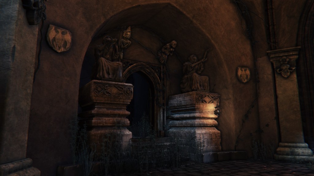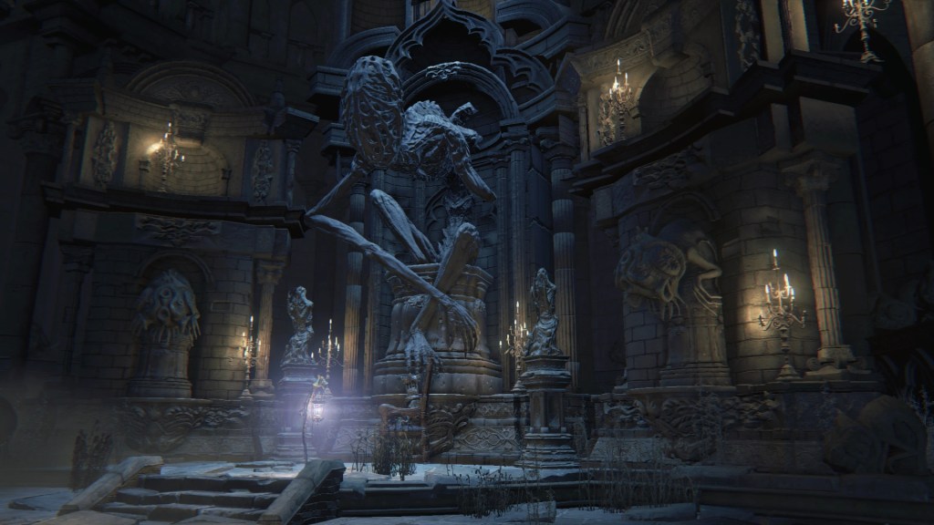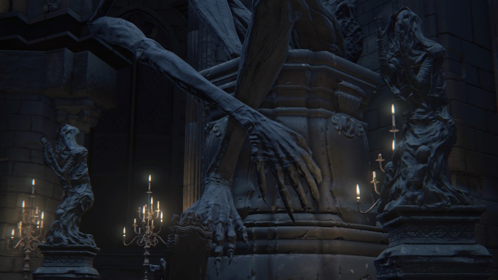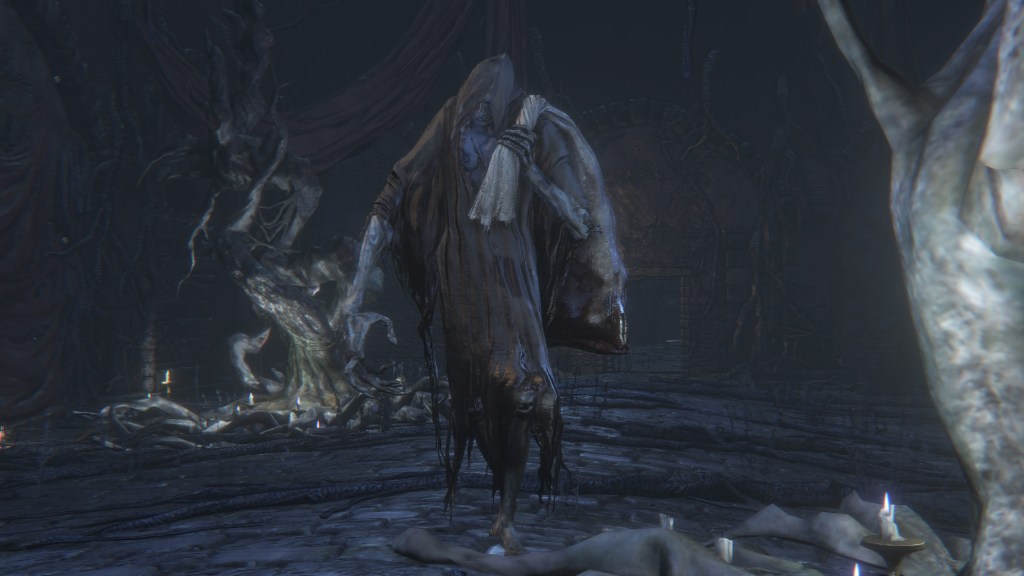 As part of this drift of the cultural memory, Yharnam religion even has a developed cosmogony and eschatology. The doll posits the notion of god as the loving Creator of Man based on what she learned about the local Healing Church from the hunters she interacted with. Meanwhile, certain Yharnamites will invoke “Idola” as our judge while trying to kill us, cut dialogue also naming an Aaragon and Louvan. Implicit is the preconception that certain gods will judge our sins in an afterlife — with a name like Idola meaning idol or false god, no surprise to see it attached to such a false premise. At best, Yharnamites are worshiping perversions of the gods the Pthumerians serve, not recognizing their actual relation to them or death’s relation to the next world. Instead, their beliefs have evolved to resemble Christian theology more than the Lovecraft mythos. Only Yahar’gul bucks the trend, because it was where this religious culture branched off from.