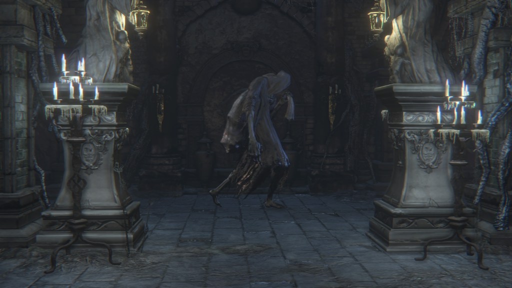 One concern might be that this system is ripe for abuse, but it has the perfect adjudicator in Gehrman. The first hunter remains in the dream as its immortal adviser, providing the rest counsel on their best path forward. This role seems rather flaccid for the father of all Yharnam hunters at first glance. Gehrman can only recite words from his or past colleagues’ experience, unable to leave and continue the hunt himself. But if there is ever a mess, Gehrman admits to taking care of the cleanup. Specifically, he is the custodian of hunters who no longer have a place in the dream. Hunters drunk on the blood pumped into their veins, hunters too comfortable to awaken, hunters failing to play nice with their fellow hunters, hunters wishing to simply walk away from hunting — whatever their reasons, Gehrman removes the also-rans by force. Killing the person in the dream severs the connection, freeing them to live and die in the waking world. Gehrman tries to make this process quick and painless with a single swing of his scythe through the neck, but that is only if the other party cooperates.