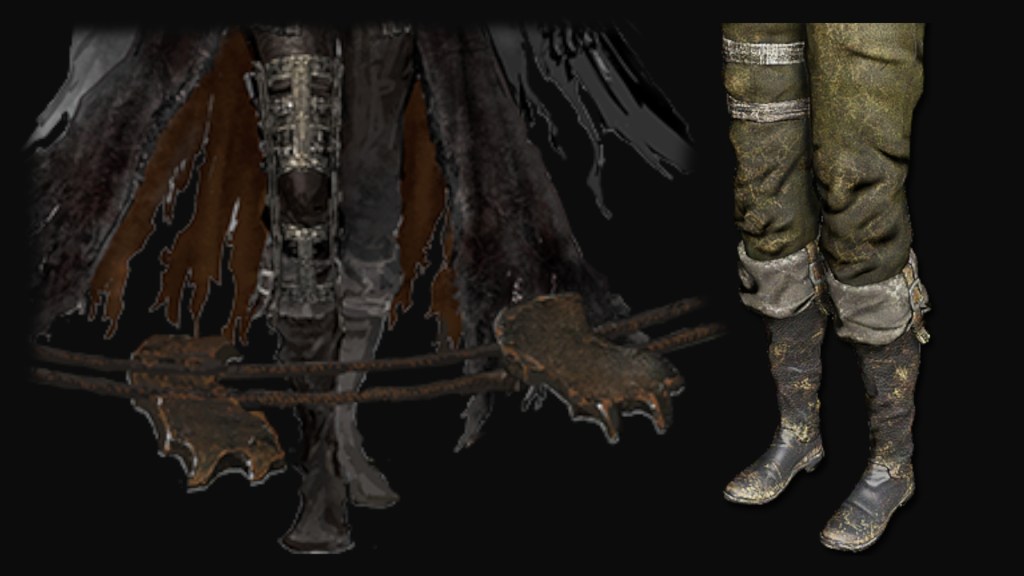 Although extreme, this gentlemanly hunting sect highlights an important truth: the hunters feared the beast hunt blood. The reason the old hunters, especially the gentlemanly types, wore metal trinkets was because they were desperate for some amulet of protection. They feared infection from the disease and so tried whatever they could to avoid becoming beasts themselves. Unfortunately for them, they were kept in the dark about the precise cause and suffered for it. Another superstition arose that “beast blood creeps up from the right leg” in obvious reference to how hunters — mostly right-handed, like people as a whole — inject their right legs with blood vials from the church’s transfusions. Failing to make the connection and perhaps encouraged by the thought that it helped treat the disease, the ignorant old hunters kept using the convenient source of instant healing with reckless abandon in ever riskier hunts. When they did feel the transformation begin to stir in the leg, they used belts to restrict blood circulation and thereby slow if not halt the disease’s progression.