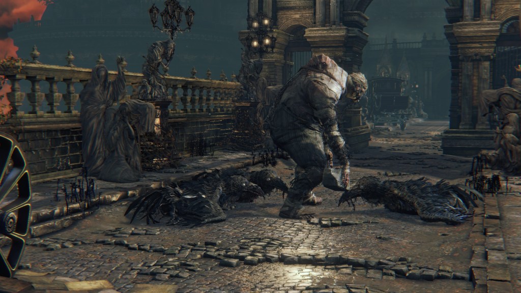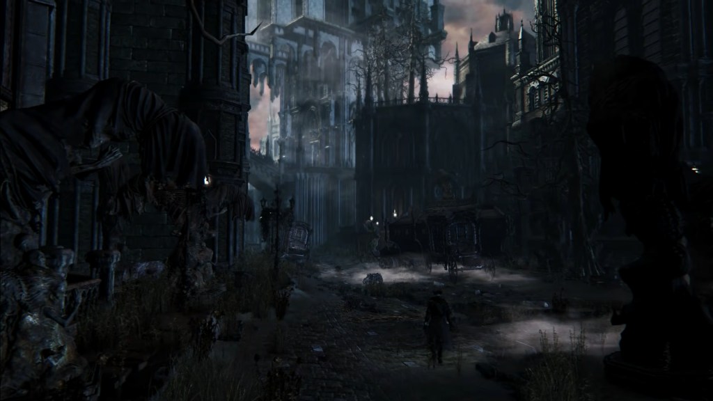 So many have died to, or as, beasts that graves have begun to crowd every street corner. Human bones fill boxes, barrels, and even wheel barrels. Coffins and hearses litter each avenue. Suitcases of people’s luggage stack up on the cobblestone, ready to be shipped off with the coffins. Horses lie slaughtered before their abandoned stagecoach. And of all this is casually left even in front of doors to newly vacated homes, it would seem. Sacrificing the old city changed nothing, Yharnam is still marching toward extinction. It is obvious to anyone that the current powers that be are either corrupt or incompetent. Whichever reason it is, the situation calls for a revolution.