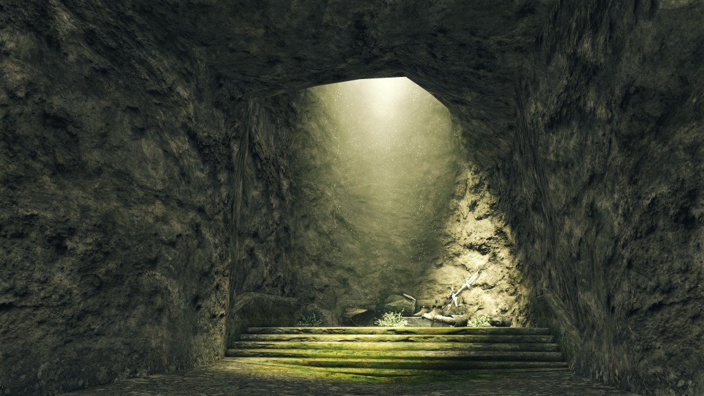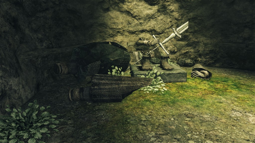 The firstborn’s Sunlight Blade spell hides within in a chest at the Shrine of Amana while his Great Lightning Spear can be acquired in the Pit, associating them both with the Heide civilization. The latter miracle can be looted from the Undead Crypt, which borders Amana and is known for preserving knowledge otherwise lost in the outside world. The lesser Lightning Spear is similarly found in a chest in Earthen Peak where we also find the Sunlight Altar, showing that it was known even to Alken. Then there is Heavenly Thunder taught by both Targray and Cromwell, the former a knight of blue carrying on Heide’s legacy and the latter a cleric from Lindelt. This miracle, which creates a ball of lightning shooting out in random directions, has been labeled as both a prototype and epigone of Lightning Spear, which sounds contradictory but might actually be reconcilable.