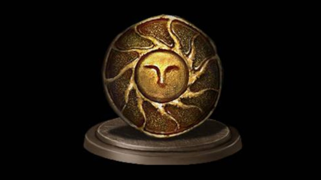 For all intents and purposes, the Heirs of the Sun are just the Warriors of Sunlight rebranded. Aside from the similar name to the Warriors of the Sun, heirs receive the exact same medals for performing the exact same duties as their original Dark Souls (DS1) counterparts. These are then offered on the exact same balcony platform from DS1’s Undead Burg to the exact same altar with the exact same broken statue of Gwyn’s firstborn, who continues to be referenced as the God of the Sun in item descriptions. The covenant likewise draws influence from the sunlight covenant’s most prominent member, Solaire. Our first rank rewards as Heirs of the Sun are the Sun Sword and Sunlight Parma. The former “sun long sword” (太陽の直剣) shares its name and design with the Sunlight Straight Sword from DS1, though the high-quality weapon looks to have faded with age since Solaire wielded it. The latter “sun small shield” (太陽の小盾) appears much newer but depicts an “old warrior” (古い戦士) resembling Solaire on its face. Clearly, the Heirs are very much the Warriors’ successors.