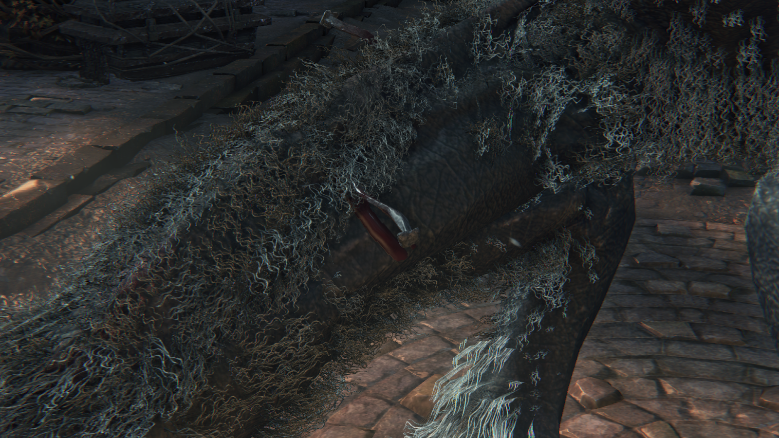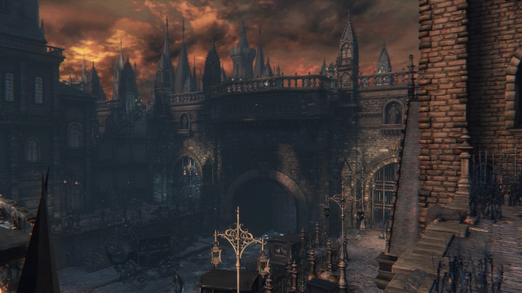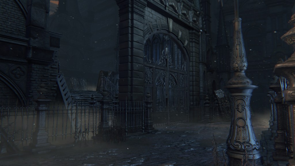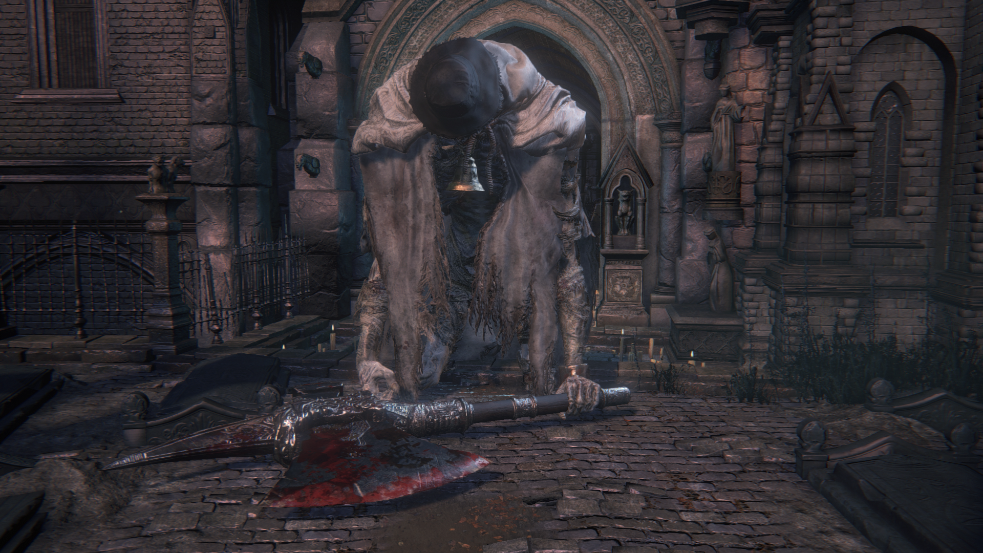 But the hunter chief had apparently been suffering the disease for some time, the stakes impaled in the Cleric Beast’s legs revealing their leader’s desperate attempt to restrain himself like the dead blood-starved beast in Old Yharnam before beasthood finally took hold. If that was the last resort, then the hunters under him probably fared no better before then, and we can hear the chief’s beastly screech as we first begin exploring Central Yharnam. In short, it didn’t take long for the Church’s plans to fall apart. Perhaps defending the Ward’s main gate is some twisted remnant of the chief’s sanity trying to maintain quarantine, or perhaps he was simply left to watch the gate while the rest of the hunters spread throughout the town. Either way, there is good reason we don’t see any of these church hunters still alive. Either they became beasts for the church servants to hunt down or food for the existing beasts to lap up.