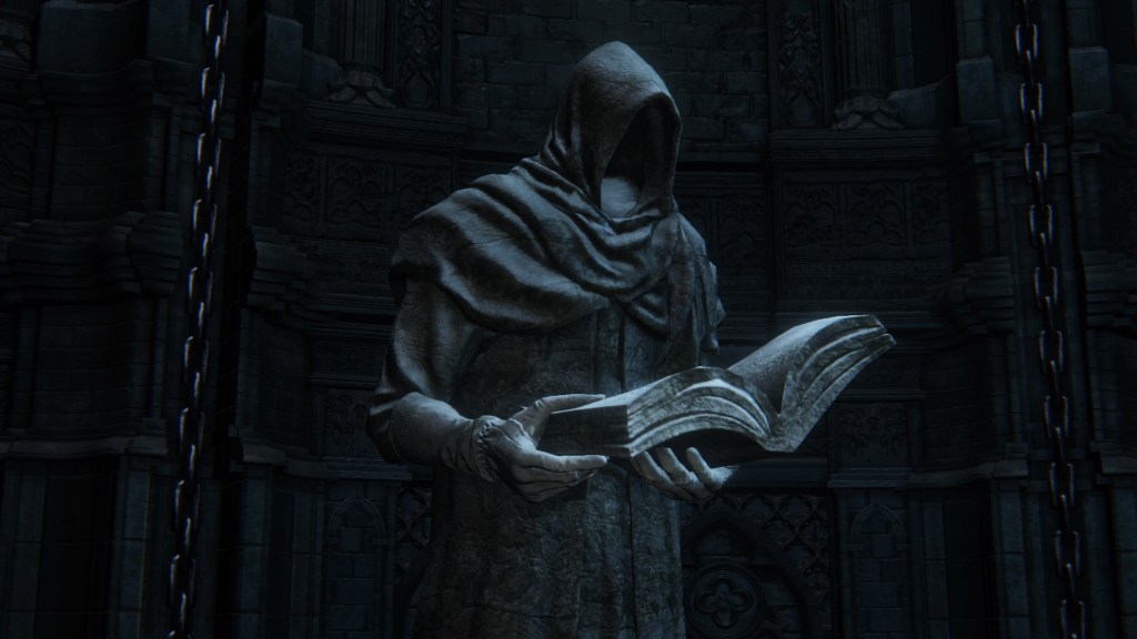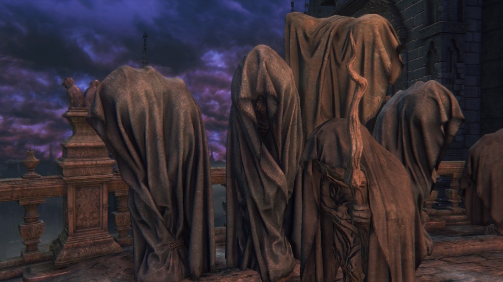 Outsider or insider, the Healing Church had an air of legitimacy consistent throughout. We can see the results around us. The Yharnamites living and working in the Cathedral Ward express gratitude to the clerics with zealous trust. The church father’s framing has fully embedded itself into the cultural milieu, and not a single clergyman below them is known to have exposed the fraud. No rank beneath the top brass consistently shows awareness of the Church’s true goals. Every individual receives information appropriate to their devotion to the institution, though clerics in black are probably kept in the dark more often than their white counterparts. Therefore, the traitors of Byrgenwerth could hide behind a huge buffer of followers who truly believed in the sanctity and morality of their work as they dealt with the lay believer on the day-to-day. With that, everything was in place; the residents of Upper Cathedral Ward could do their unsightly work without fear of anyone pulling back the curtain.
