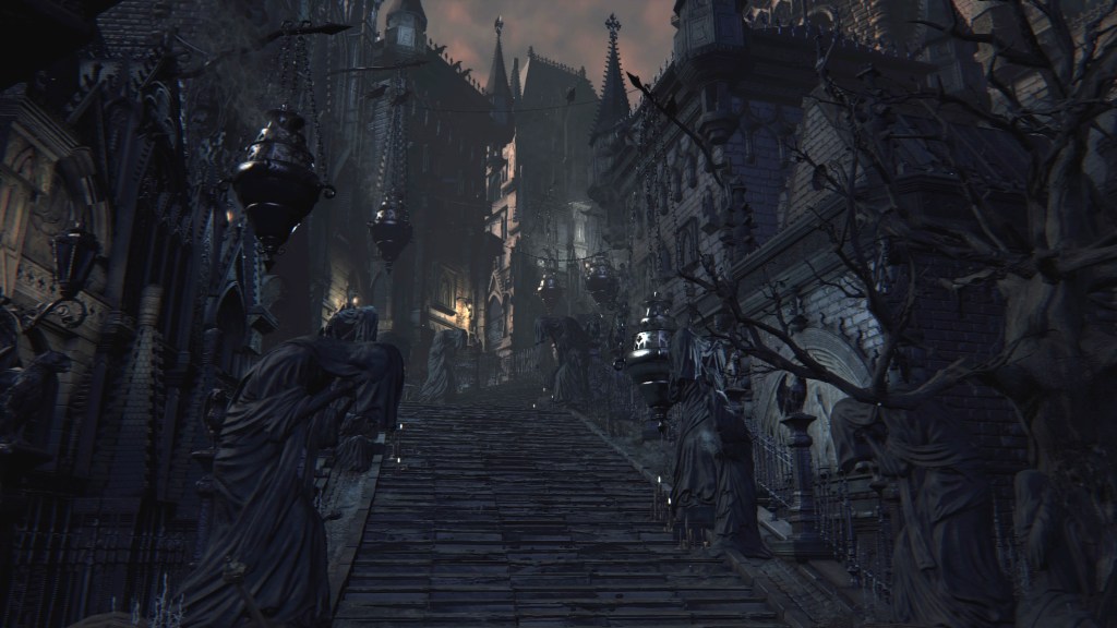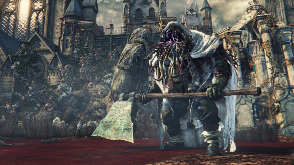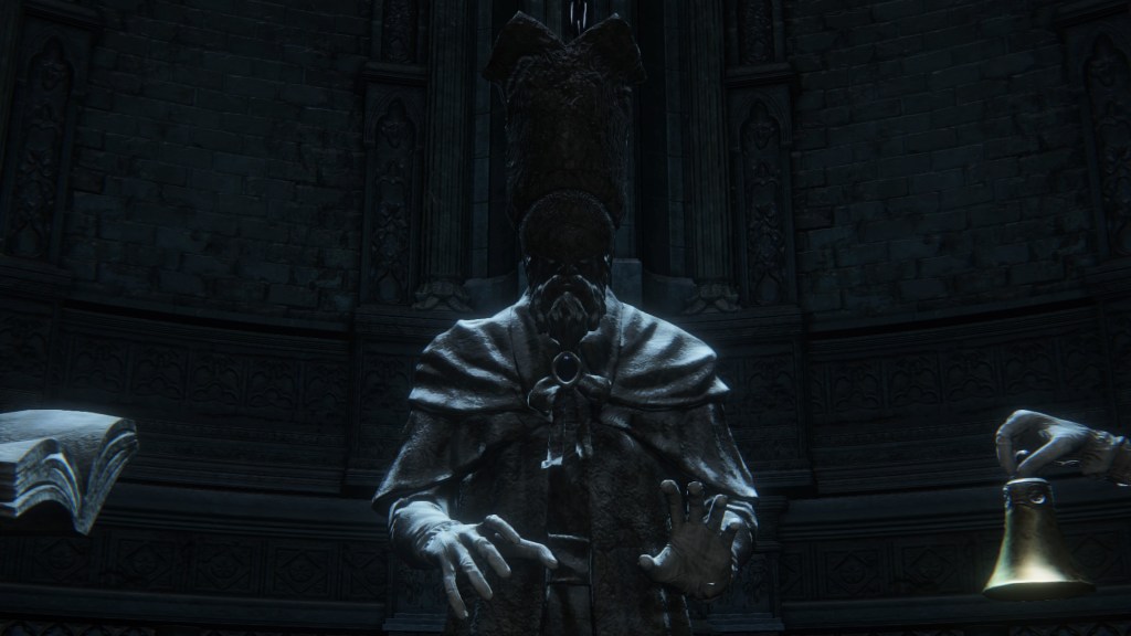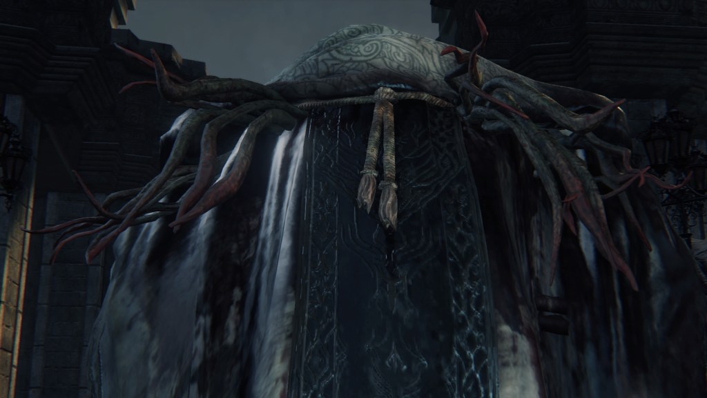Bloodborne, with few exceptions, focuses more on its web of factions than its characters. But given the writing style of Director Hidetaka Miyazaki, these factions in many respects are this game’s characters. There is perhaps no fictional institution better embodying the corruption, elitism, and dehumanization in modern medicine than the Healing Church. Presenting themselves as savior to the public while internally just crunching numbers with no plans for an actual cure, “health” for the Church is simply prolonging the damage to keep the desperate dependent on “treatment” another day. What its members might lack as individuals they more than make up for as the collective. At the same time, the bureaucracy is its own beast beyond the scope of any singular man, a soulless ideology made manifest and run amok. Put your faith in men’s idols and you will find yourself dealing with devils.