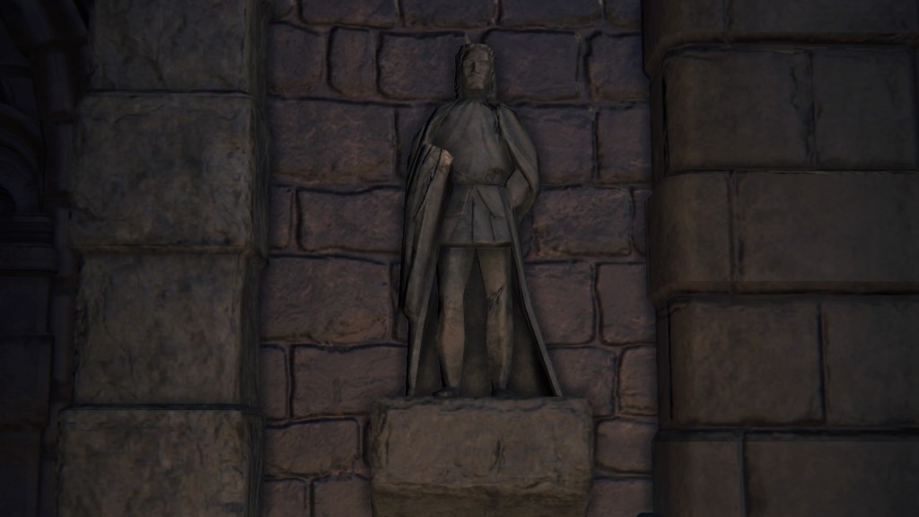 From the Healing Church Workshop to Oedon Chapel to the Lower Church to miscellaneous houses in Cathedral Ward and Central Yharnam, there are effigies of a queen ornamenting the walls. With Yharnam so disconnected from its namesake, the only queen to inspire this depiction during the Healing Church’s era is Annalise. Certainly, the crest on the Cainhurst monument in Hemwick also decorates various archways in Cathedral Ward, with nobles in medieval dress ornamenting certain buildings. This suggests that all this too was made with the castle’s backing. Perhaps Laurence approached Cainhurst as soon as the traitorous scholars bought property in Yharnam, but the castle had become their sponsor by the time the blood ministers formally established themselves as a Church. There was only so much a bunch of students could afford in a foreign land, and extravagant Cainhurst had the riches to fund such a civil project. In that case, Laurence evidently convinced the queen to bankroll the expansion in their operations.