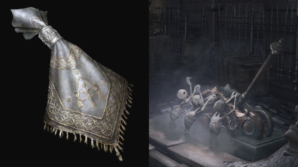 Cloth sign that the church hunters’ chief is said to have once possessed. Serves as a key to open the main gate leading to the Cathedral’s round plaza.