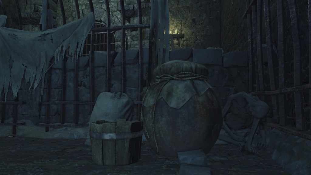 All of this is highly reminiscent of the witch Yuria, who shares the same voice actress in Demon’s Souls, except Karla appears to have been disillusioned about her sorcery long before confinement. From the description to her ashes, the spurned child has no one to search for her anymore, meaning no surviving loved ones like Zullie has in Alva. The only person who ever cared for Karla seems to be her mother. Based on Dark Edge’s description, Karla learned this spell she teaches from her matriarch. However, this immediately raises eyebrows given the nature of the sorcery. Forming humanity into a blade is akin to another spell tied to Manus in DS2, Dark Greatsword. However, this sorcery was developed for a witch to defend herself as well as put the blade to herself. Their kind understand that capture likely meant a fate worse than death. If they could not remain on the fringes of human habitation, and attention, then better to end things on their own terms with a single slit of the throat or stab through the heart. What does it mean then that Karla only ever used Dark Edge once and is now alone?