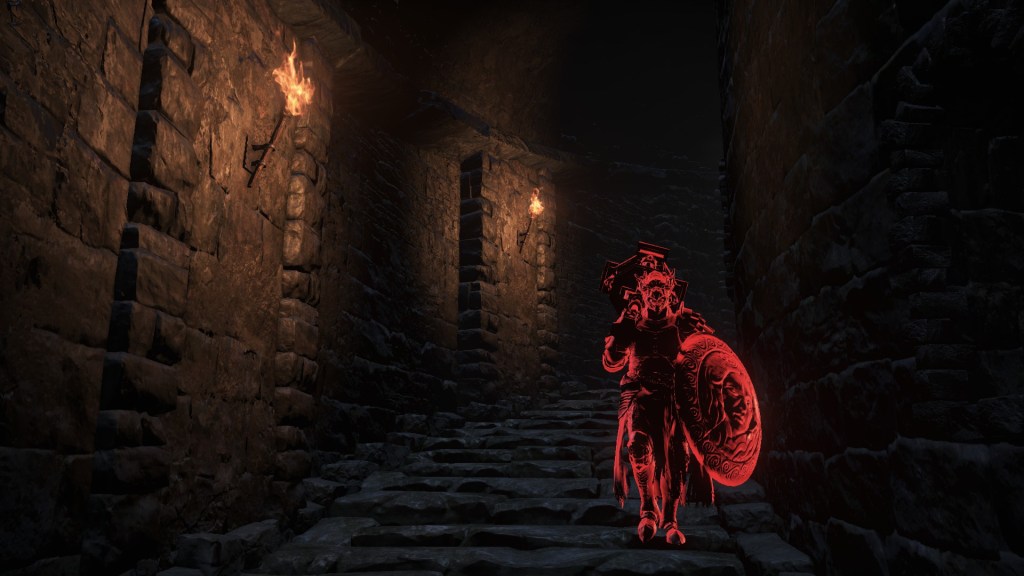 In short, these two invading spirits aren’t living men using red eye orbs, but the souls themselves manifesting a spiritual body through the Abyss’ power. DS2 did establish the potential for the Dark’s involvement in reanimating the dead in spirit form. Likewise, Affinity demonstrates that an emotion as simple as love can serve as the driving force to animate humanity, even if that single-minded will inevitably leads to foreseeable self-destruction. Like black phantoms in Demon’s Souls, Eygon and Alva are driven by their strong emotions, perhaps deep-seated regrets over those they cared about, to reform their bodies as spirits and continue following their hearts. This, again, is evidently only accomplished from the Abyss in the Ringed City empowering those wills, unsophisticated they may be. The swamp has already shown the ability to induce souls to possess their corrupted bodies or armor, so this would only be one step further than that and still behind the corporeal generation seen with locusts and witches.