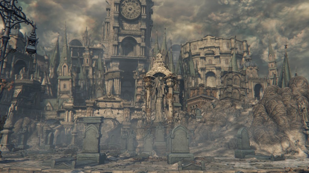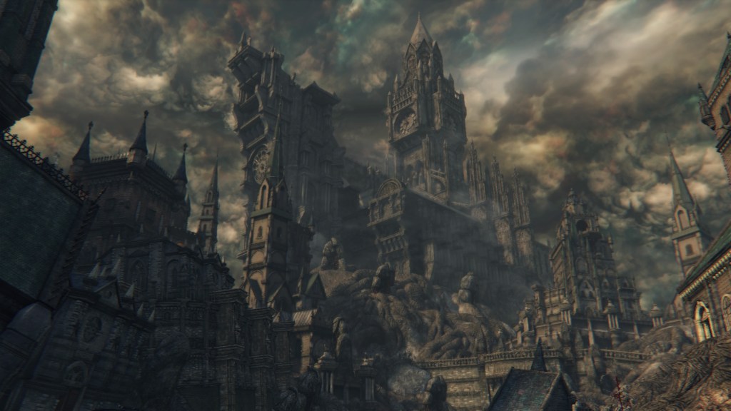 In some respects, this can be considered an extension of the Great One’s revenge. Those who faithfully served her are allowed to share in the ghost’s retribution against the hunters; giving the whole hamlet wronged by Yharnam the last laugh, as it were. The two planes of the Nightmare do seem to be connected with some intention. There is a certain irony to the clock used to discover the Great Ones’ secrets revealing the secret heart of Kos’ creation — doubly so in the Research Hall building upon the fruits of the hamlet’s devastation. In every sense, no one can know the cause to the Nightmare without first knowing the beneficiaries, a secret for a secret. This turns the safeguards to the Nightmare into a justification for the suffering inflicted, a silent reminder to any who might argue that this malice against the hunters is undeserved. The god resurrecting her worshipers in the heavens can thus be considered the flip side to that hell for sinners complicit in the deity’s murder. They became martyrs and so are awarded “paradise”, a twisted taunt upon the truly cursed.
