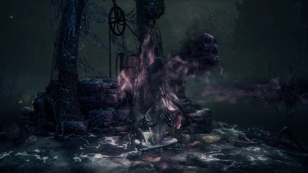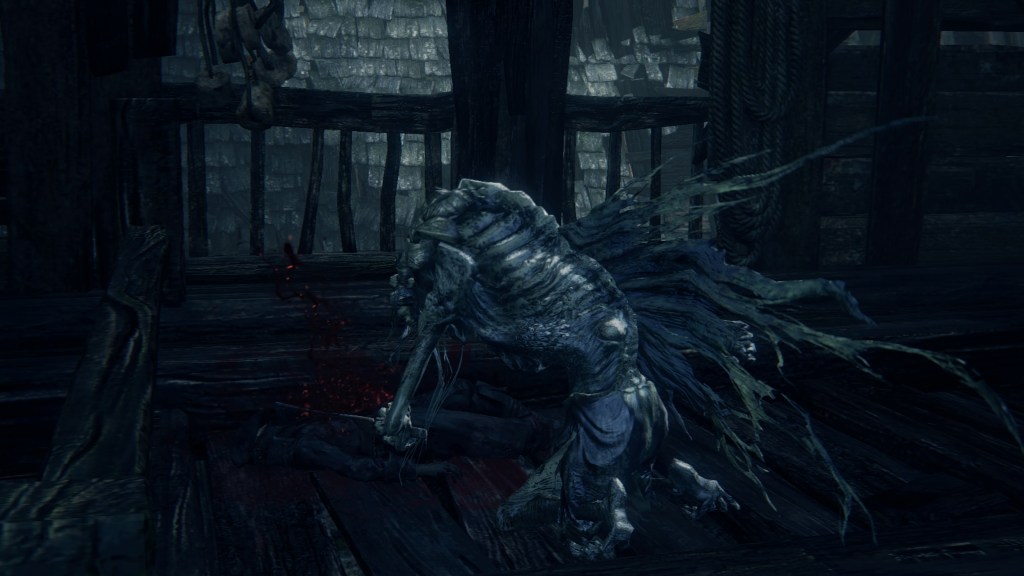 In short, we are not dealing with Kos, but the ghost of Kos, whose name is actually “Ghos”, (ゴース) fittingly enough. The Nightmare’s creator is the grudge which has consumed the spirit, reminiscent of yuurei (幽霊) — Japanese spirits that remain bound to the earthly world due to grudges of their own. This is why we never see Kos take an active role stopping those who would interfere with the Hunter’s Nightmare. The god is dead, and what we witness is the construct left by her spiteful will. Just as its cultural inspiration commonly seek blind and overbroad vengeance against the living for a perceived wrongful, and often violent, death, the ghost of Kos doesn’t think of anything except unleashing her wrath upon others. Casting the net so wide on “hunters” also serves the Nightmare’s secondary purpose: doom any sort of “lineage” among the hunters responsible. Dialogue from residents of the hamlet affirm that the curse will affect not just the hunters, but also any child born of their line thereafter. They destroyed her and her legacy, so they and theirs shall suffer for eternity.