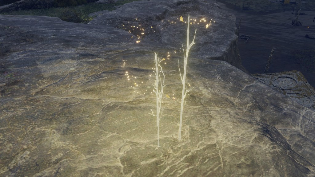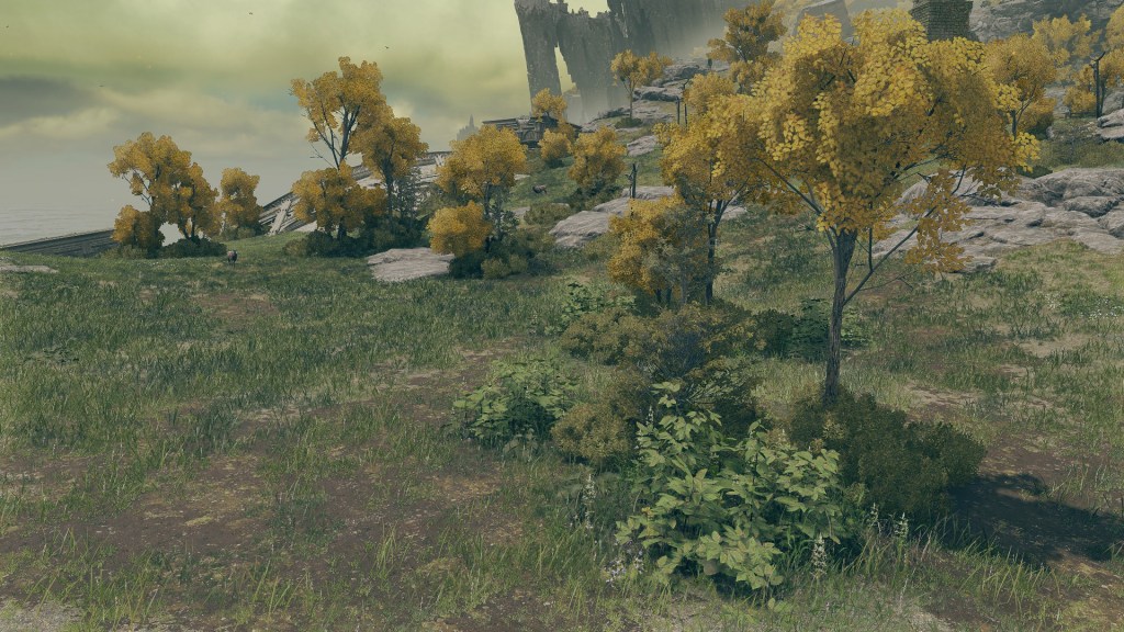 The Erdtree’s radiance in itself is far-reaching, and we see byproducts all across the continent. With few exceptions, the larger trees in the Lands Between grow yellow leaves, presumably a result of disproportionately absorbing the golden tree’s power constantly lighting the sky on even the darkest nights. The effect is, naturally, more pronounced on the plateau, where not only are the leaves more vibrant; even the bark has uniquely adapted to resemble a white birch. This is further supported by description for the Warming Stone. Before the Elden Ring was shattered, its rays provided a soothing healing effect replicated in that enchanted stone crafted with Erdleaf flowers. If the power of life-giving gold can be felt in purely the light emanating from the tree, then surely the plants adapted to feed on sunlight will experience even stronger effects. With the Erdtree crowding the sky, it was inevitable that certain species of trees would evolve to retain at least some of that gold, yellowing their leaves in the process.