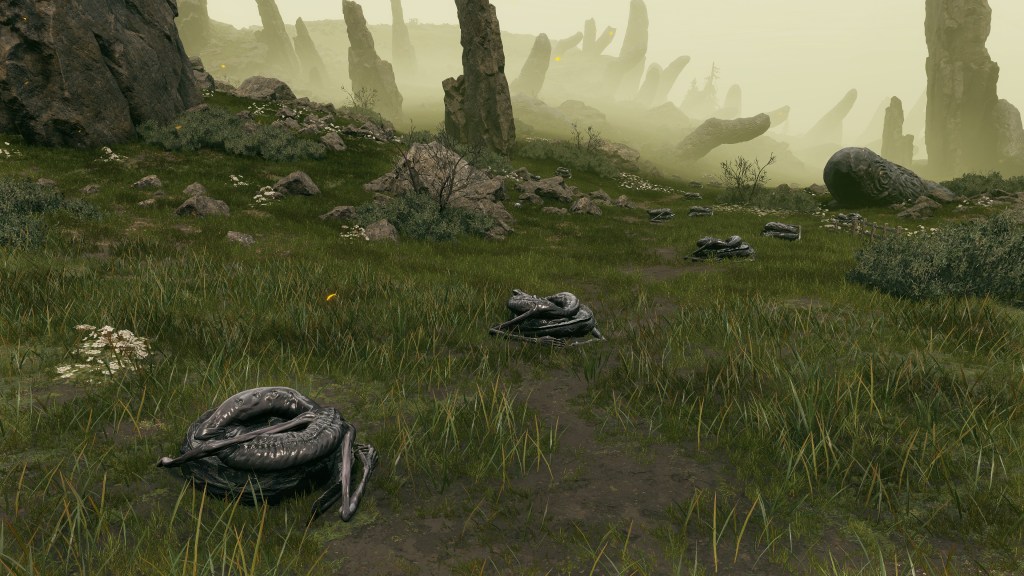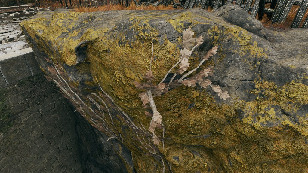 The village happens to be situated close to the Finger Ruins of Dheo, where we overwhelmingly encounter a unique variant of lampreys. These pink lampreys appear fleshier than their blue counterparts, their lower halves covered in molted membrane instead of scales. What prevents these oddities from manifesting at the ruins of Rhia? The main variable would be who resides in the surroundings to transform. The blue lampreys were the fate of typically male scholars, so could the pink version not be the end result of a female shaman’s transformation? Factor in the common gender association between pink and blue, and we can conclude that the rarer lamprey is a byproduct of the shamans settling down in the area. At least a number of villagers took interest in the spawn of Metyr over the course of the village’s history. Even assuming that these individuals were inordinately obsessed, the secrets of the Fingers must have played a role in shaping the larger clan’s shamanism. Highlighting their frequent visits, the roads to the village and Dheo both share the same wooden fencing.